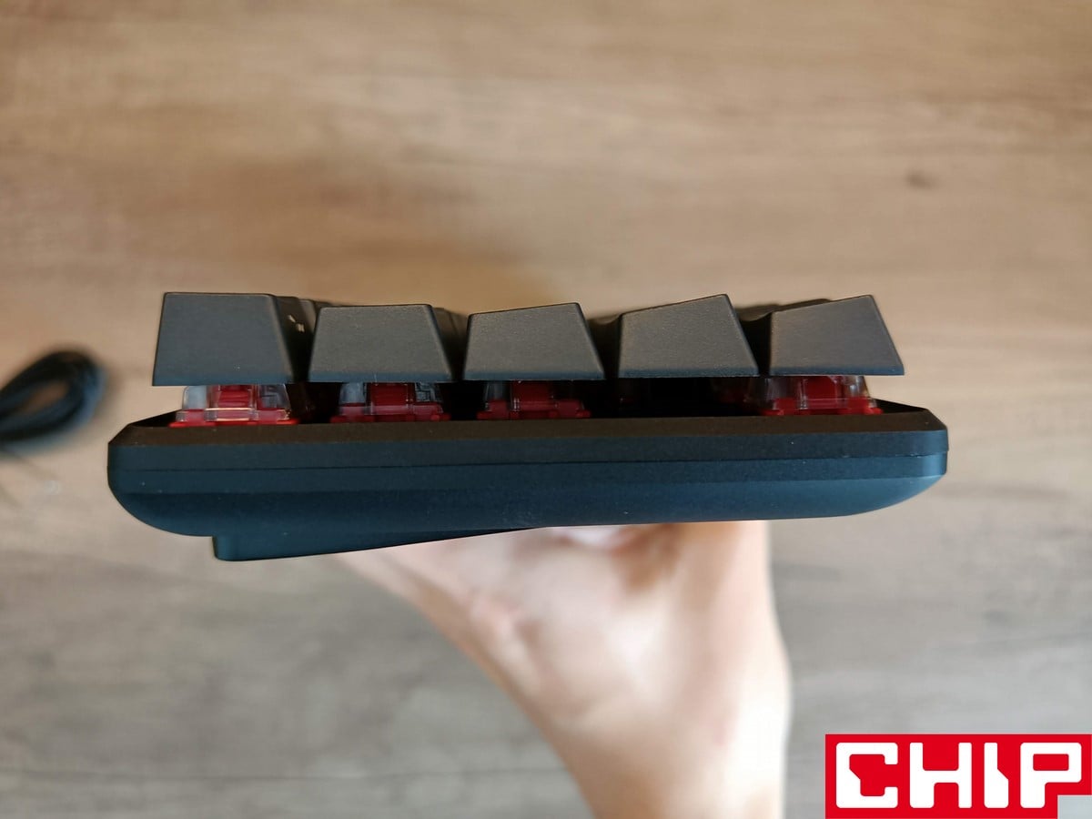 Alloy Origins 65 jest ograniczony do autorskich przełączników mechanicznych HyperX Red o liniowej charakterystyce działania i wytrzymałości rzędu 80 mln aktywacji. Na papierze są wręcz “szybszymi” Redami znanych Cherry MX, bo choć wymagają tej samej siły rzędu 45 gramów, to ich aktywacja zachodzi szybciej, bo nie na poziomie 2, a 1,8 mm. Dodatkowo cała droga pracy również spadła o 0,2 mm, czyli do 3,8 mm. Efekt? Na moje oko palce wręcz cudowne, bo choć podczas pisania o przypadkowe aktywacje jest łatwo, to z czasem możemy przyzwyczaić się do tak bardziej “agresywnych” przełączników.