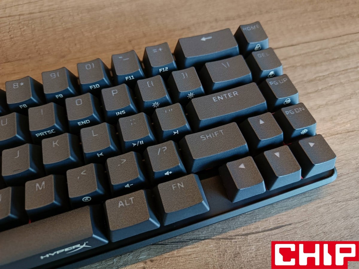 W ich przypadku można mieć wątpliwości wyłącznie co do wieloletniej trwałości nadruków dodatkowych funkcji klawiszy na ich bokach, choć z drugiej strony ich zupełny brak z naszymi palcami może całkowicie uchronić je od zużycia. Pewne jest z kolei, że główna czcionka nigdy nie zostanie starta, jako że wykonano ją w ramach technologii Double-Injection (połączenia czarnego korpusu klawisza z mlecznym wypełnieniem poprzez zgrzanie). HyperX chwali się też tym, że te klawisze są produkowane z formowanego dwuwarstwowo materiału PBT.
