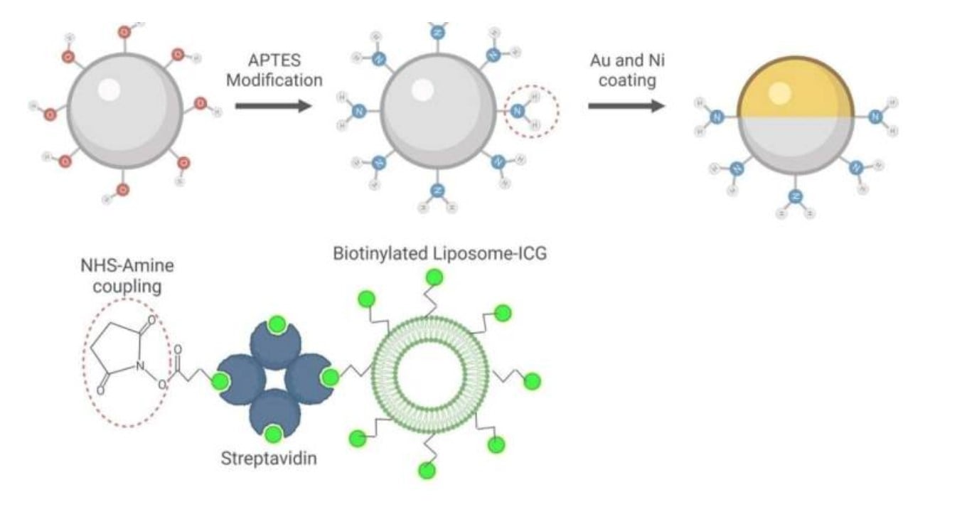 W badaniu opracowano kuliste mikroroboty z cząstek na bazie krzemionki, które zostały pokryte w połowie niklem, a w połowie złotem i obciążone nanopęcherzykami (liposomami) zabarwionymi na zielono. W ten sposób można je wykrywać indywidualnie za pomocą nowej techniki obrazowania optoakustycznego (via Phys.org).