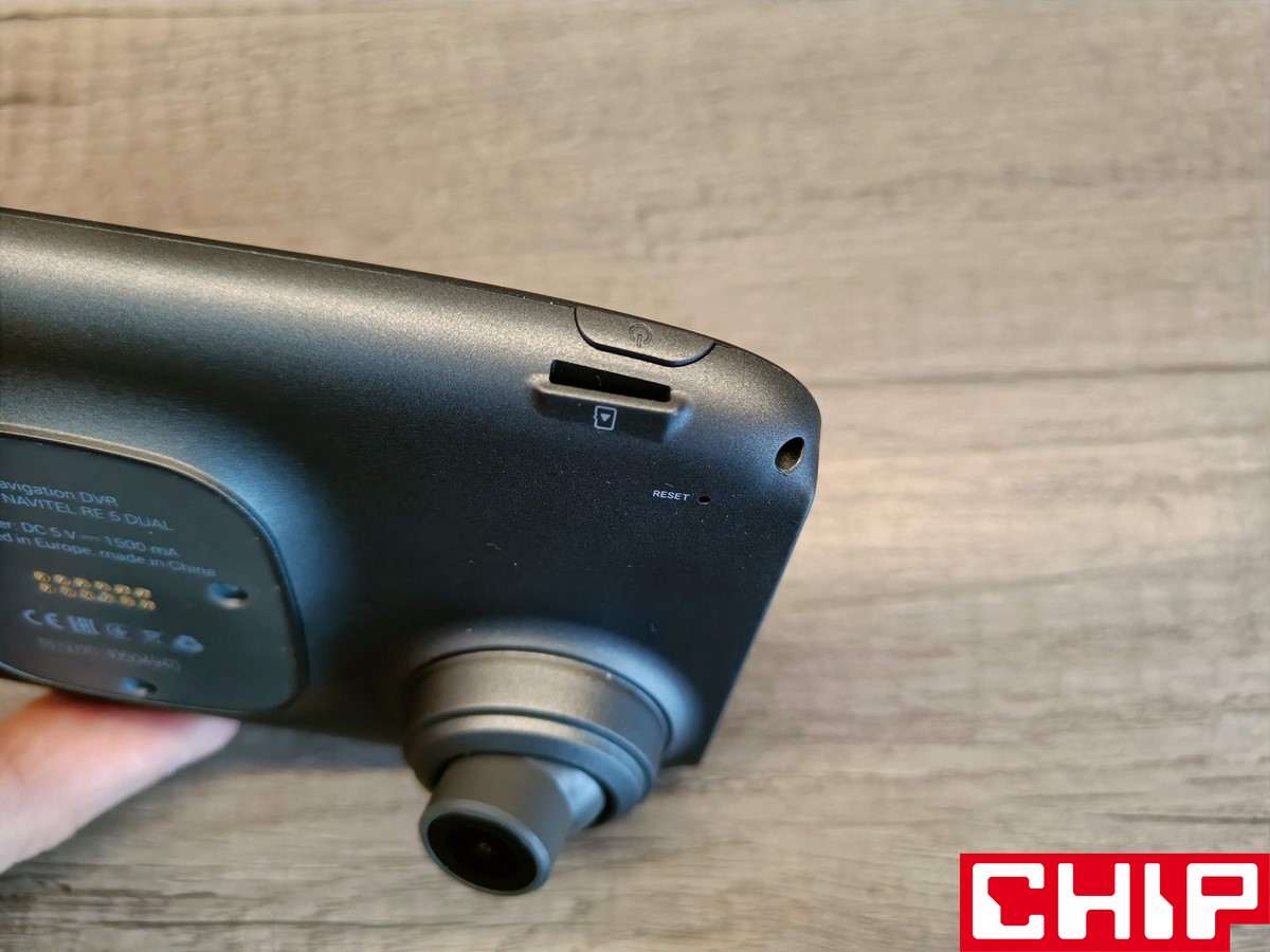 Niestety z Navitel RE 5 Dual jesteście skazani na przewód “dyndający” między gniazdem zasilającym a szybą samochodu, ale to coś, do czego można się przyzwyczaić. Z oczywistych względów ten sprzęt wyląduje bowiem u Was bezpośrednio na (mniej więcej) środku dolnej części szyby głównej. Budzi to wprawdzie obawy co do odpowiedniego kąta nachylenia obiektywu, ale Navitel rozwiązał ten problem, stosując wychylany nieco na każdą ze stron obiektyw.