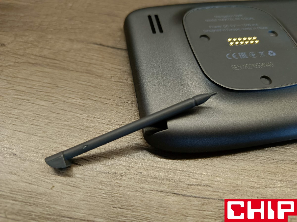 Navitel RE 5 Dual mierzy 88 x 18 x 132 mm (bez przyssawki) i “cieszy oko” ekranem dotykowym TFT o rozdzielczości 480 x 272 pikseli i przekątnej 5 cali. Nie jest to może najostrzejszy ekran, jaki widzieliście w życiu, ale przynajmniej jest przyzwoicie responsywny z wykorzystaniem dołączonego rysiku (ten jest ukryty w boku sprzętu) i wystarczająco jasny, aby podczas podróży nie dręczył Was problem ostrego naświetlenia przez słońce.