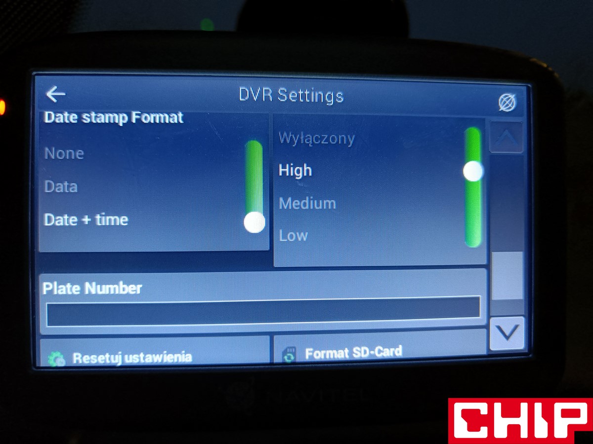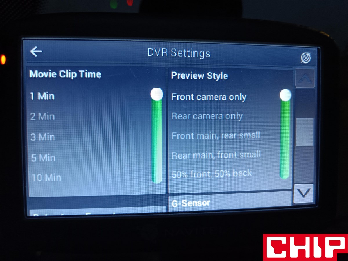 Jeśli z kolei idzie o jakość nagrań RE 5 Dual, to ten sprzęt ewidentnie powstał bardziej z myślą o byciu nawigacją niż wideorejestatorem. Widać to po okrojonych ustawieniach odpowiedzialnych za nagrywanie, które realizuje połączenie matrycy GC2053NV z 4-warstwowym obiektywem o 140-stopniowym kącie widzenia. Efektem są zdjęcia w jakości 2 Mpx i 1, 2, 5 lub 10 minutowe nagrania w rozdzielczości Full HD, które możemy zabezpieczać manualnie lub liczyć na czujnik wstrząsów, aby uchronić się przed przypadkowym usunięciem tego, które nas interesuje.