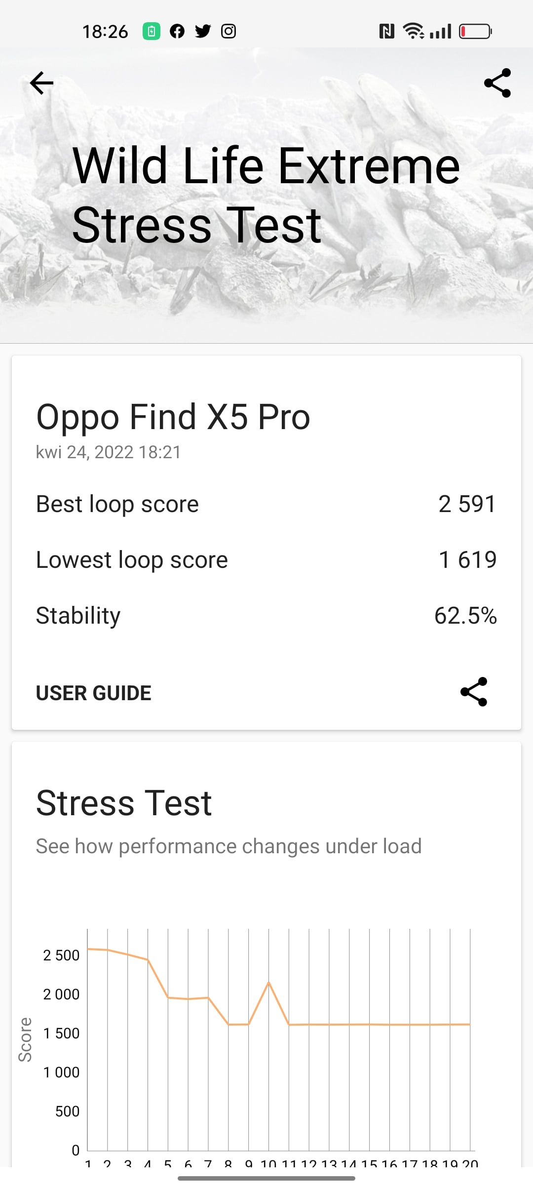 Wyniki testów syntetycznych potwierdzają bardzo wysoką, choć nie rekordową wydajność Oppo Find X5 Pro. Smartfon podczas pomiarów wyraźnie się rozgrzewa, lecz nie osiąga przy tym temperatury, którą można by uznać za niekomfortową. Stabilność wyników w teście obciążeniowym jest na poziomie zbliżonym do innych urządzeń tej klasy, choć zwraca uwagę stosunkowo powolny spadek na początkowym etapie.