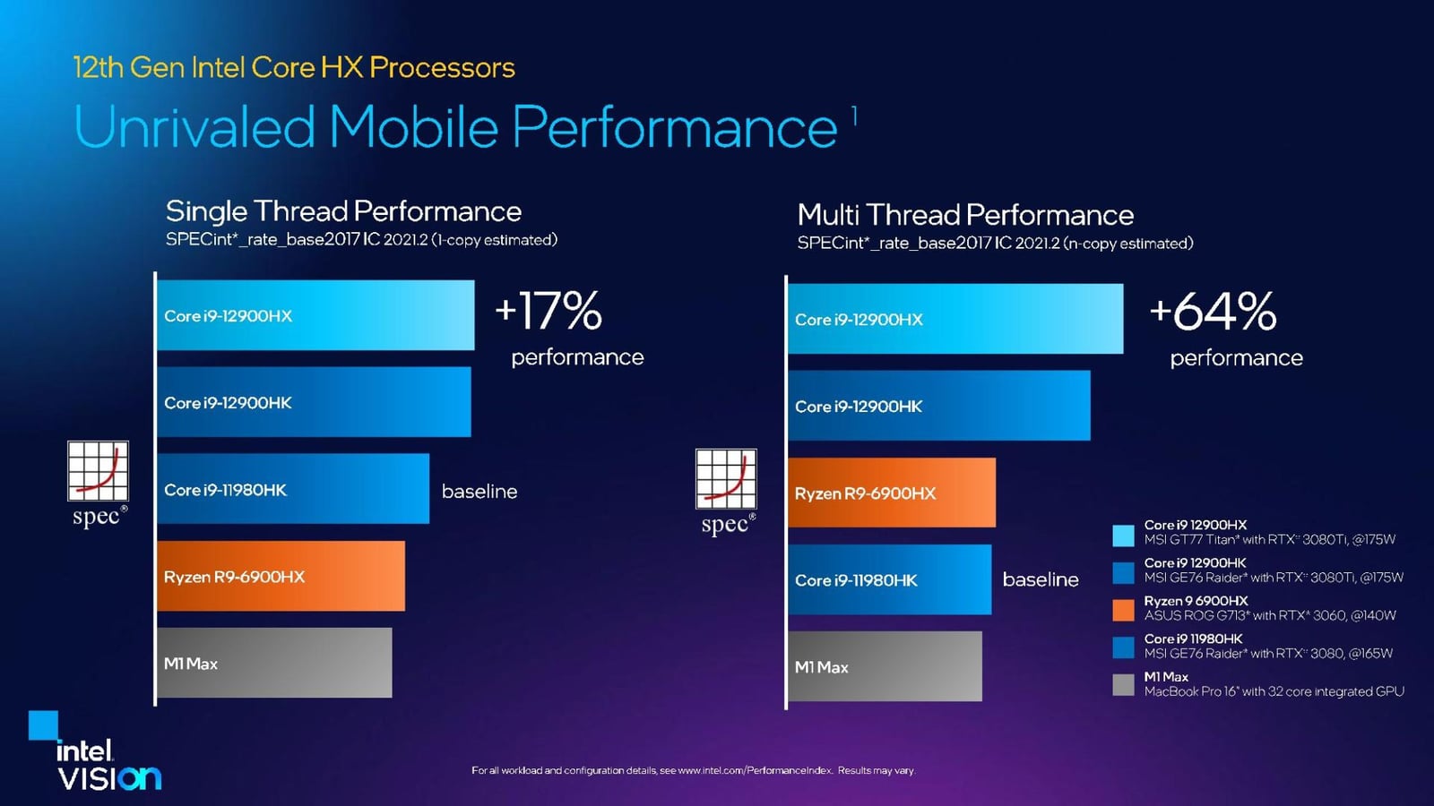 Zgodnie z wcześniejszymi plotkami, Intel wreszcie odmienił rynek laptopów, zapewniając im procesory, o których przed kilkoma laty mogliśmy tylko pomarzyć. Premiera Intel Alder Lake HX wyznacza nowe standardy na rynku mobilnym, jako że to praktycznie przeniesienie obecnie najpotężniejszych procesorów konsumenckich (Alder Lake-S) na poletko najwydajniejszych modeli notebooków.