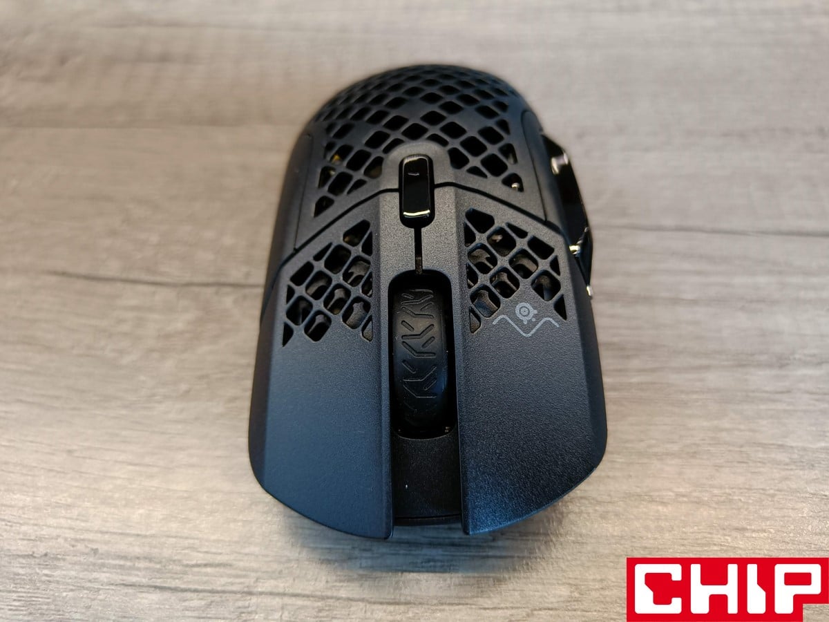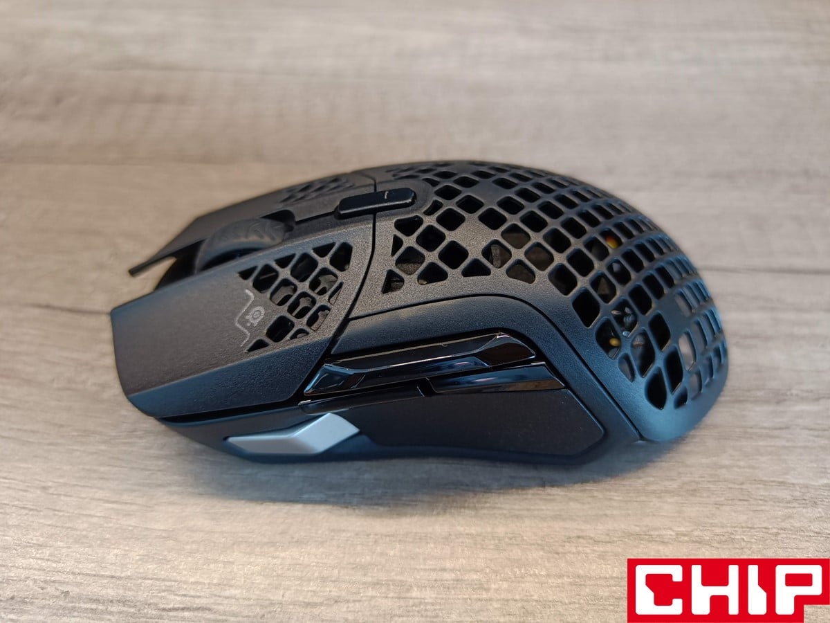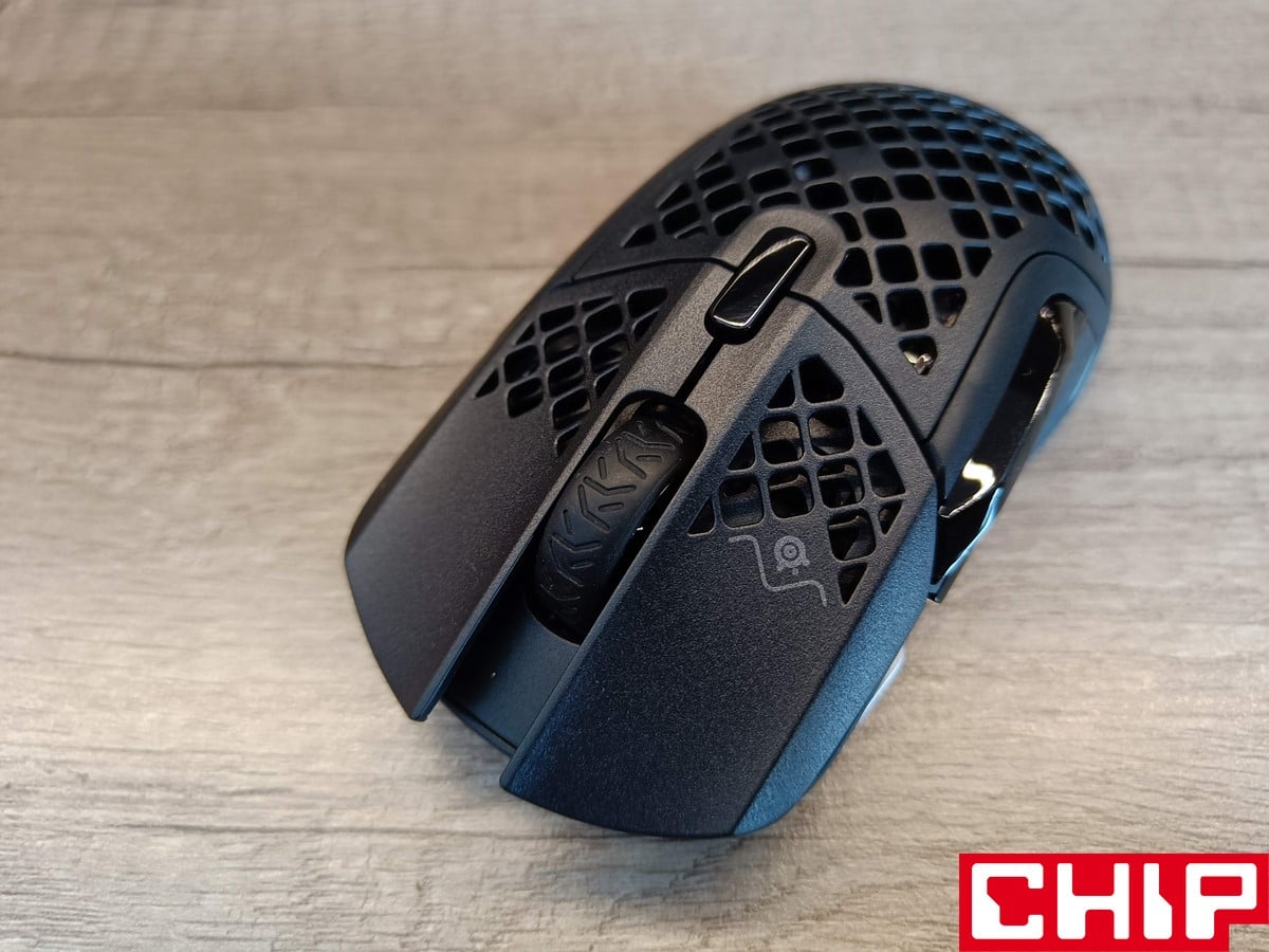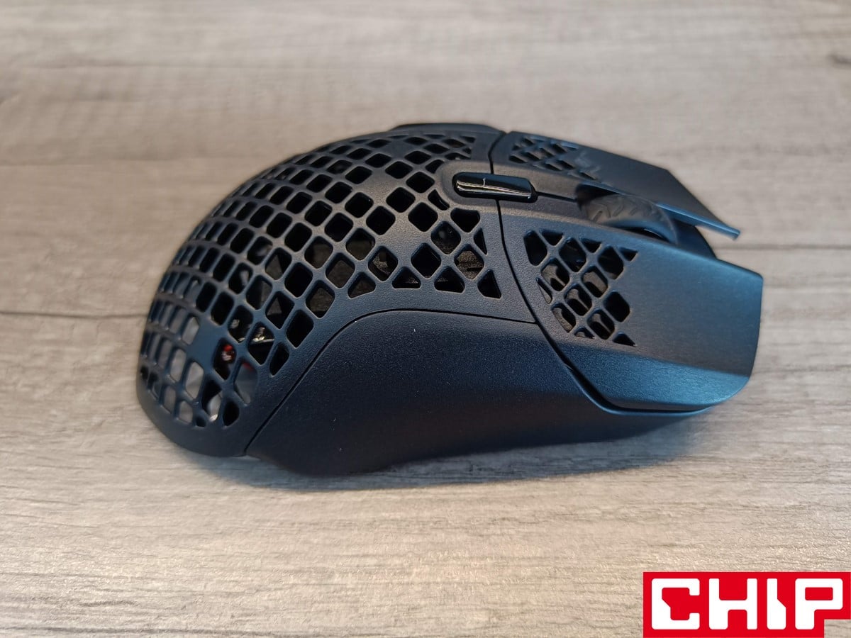 Perforowane myszki na dobre zadomowiły się na rynku i Steelseries zdecydowanie dobrze eksploatuje to podejście do projektów obudów. Sprowadza się to po prostu do tego, że praktycznie cały zewnętrzny korpus myszki jest usłany dziurkami, co jest prostym sposobem na obniżenie ogólnej wagi modelu. Przynajmniej teoretycznie, bo tego typu działania wymagają z drugiej strony zastosowania solidniejszego, zwykle cięższego tworzywa sztucznego, ale ciągle na tyle lekkiego, że waga myszek z poziomu ponad 100 gramów już dawno spadła grubo poniżej setki. Wszystko to przy zachowaniu podobnej trwałości i Aerox 5 Wireless jest tego świetnym przykładem.