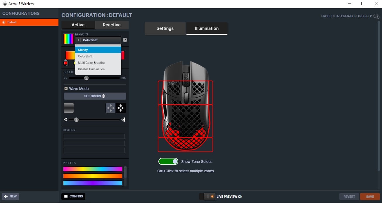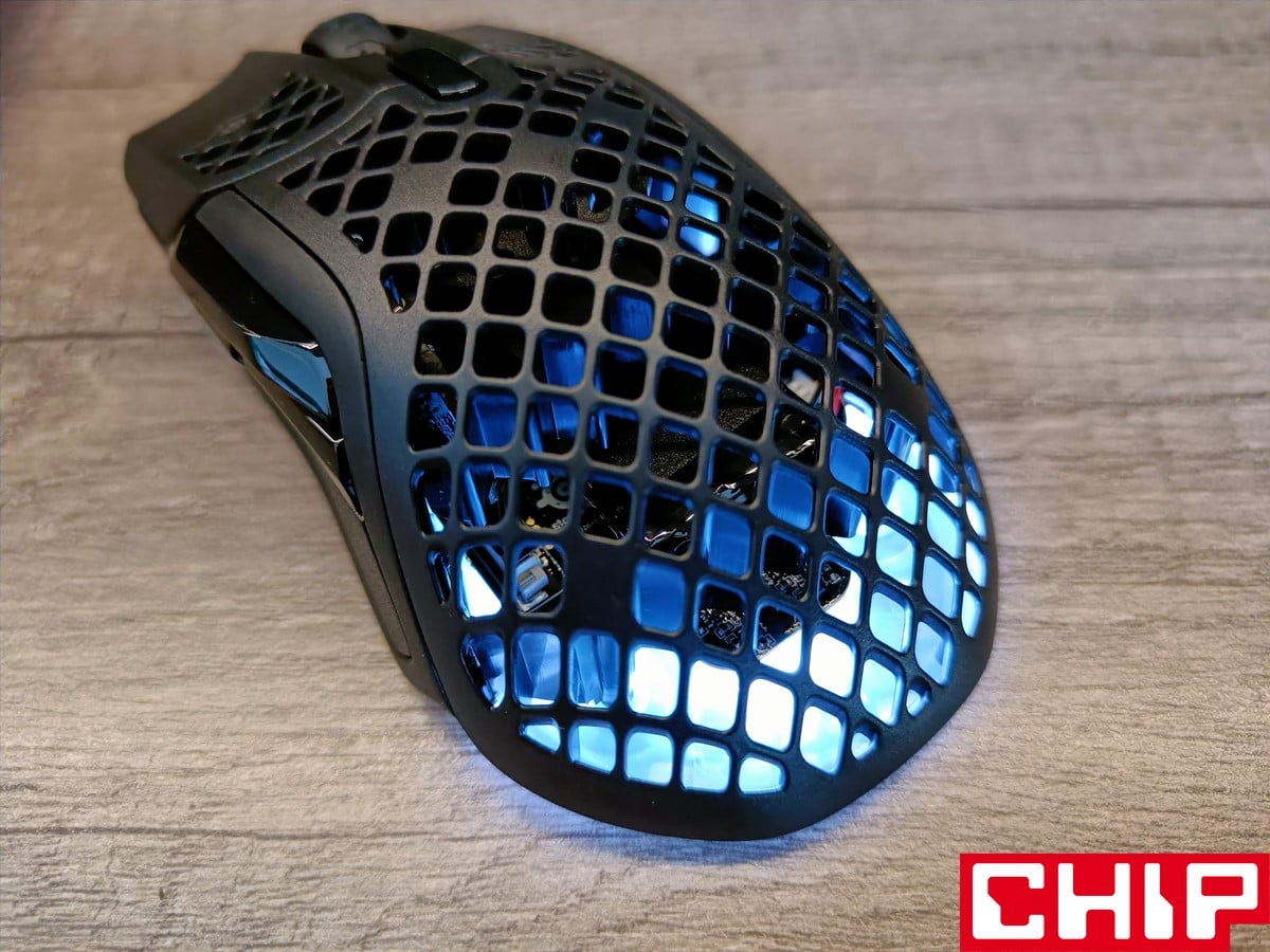 W swoim życiu oceniałem już wiele rodzajów podświetlenia myszek i odkąd rynek zaczęły zalewać te perforowane, jeszcze bardziej przestałem widzieć sens w dodawaniu tych kolorowych diod do myszek. Tak jak skromne podświetlenie pod rolką ma sens (pozwala zlokalizować myszkę w ciemności lub zapewniać informacje co do profilu/poziomu DPI), tak to ozdobne można jeszcze przełknąć, kiedy rozświetla w subtelny sposób mleczne stawki.