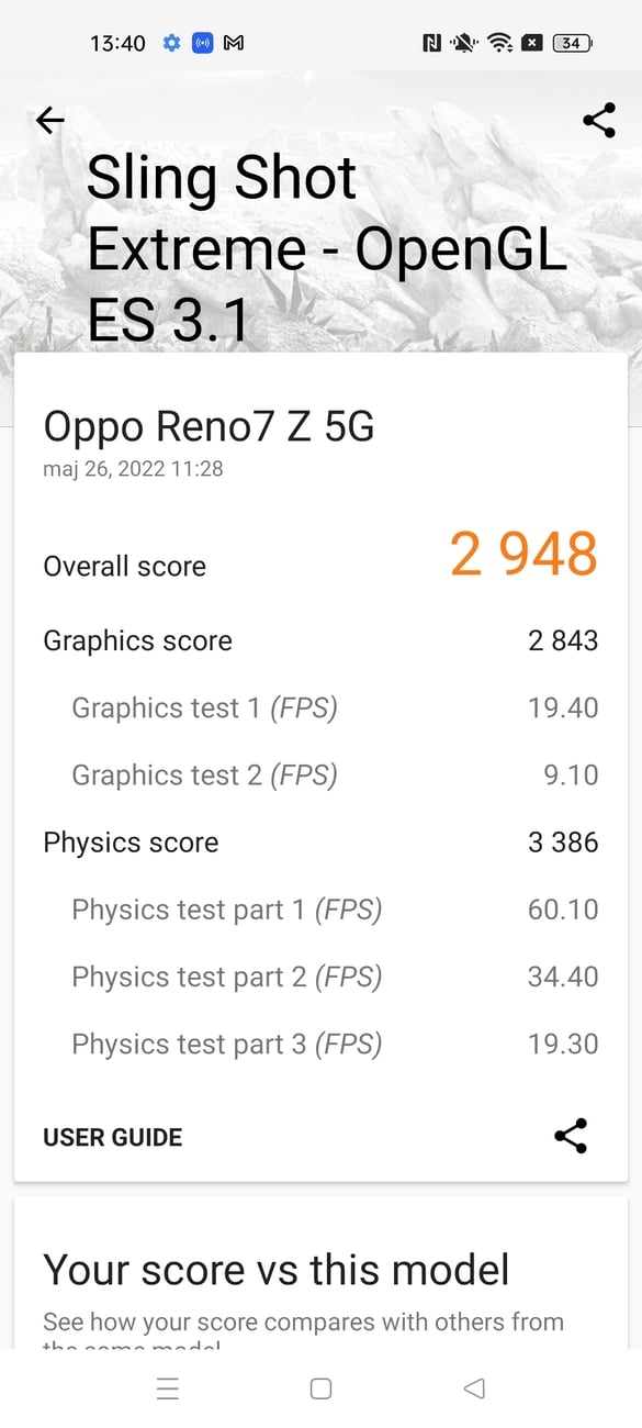 - 3D Mark (test Sling Shot Extreme) – 2948 pkt