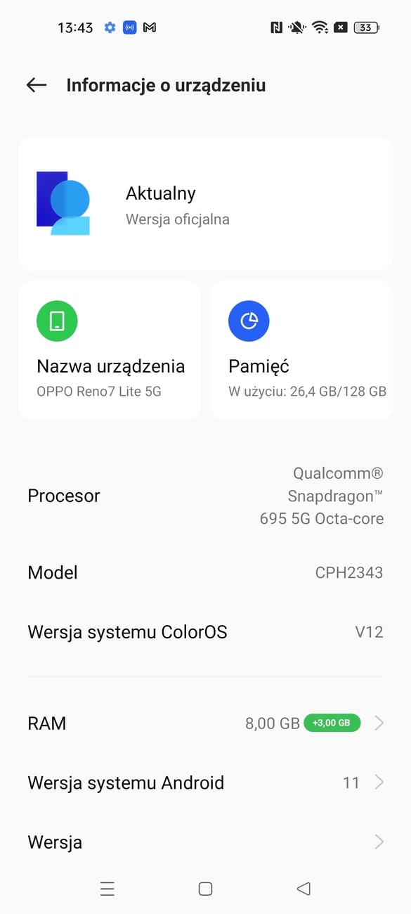 Czy wydany na wiosnę 2022 roku smartfon za 1899 zł możemy mieć na pokładzie jeszcze Androida 11 i brak aktualizacji do „12” na koniec maja 2022? Może. Przedstawiam Oppo Reno7 Lite 5G ;P