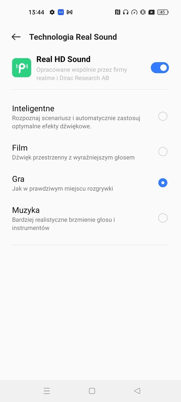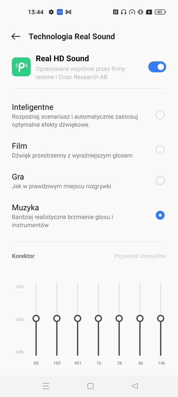 W ustawieniach znajdziemy technologię Real Sound, dzięki której możemy dopasować barwę dźwięku do Naszych preferencji. Jest również wbudowany manualny korektor częstotliwości.