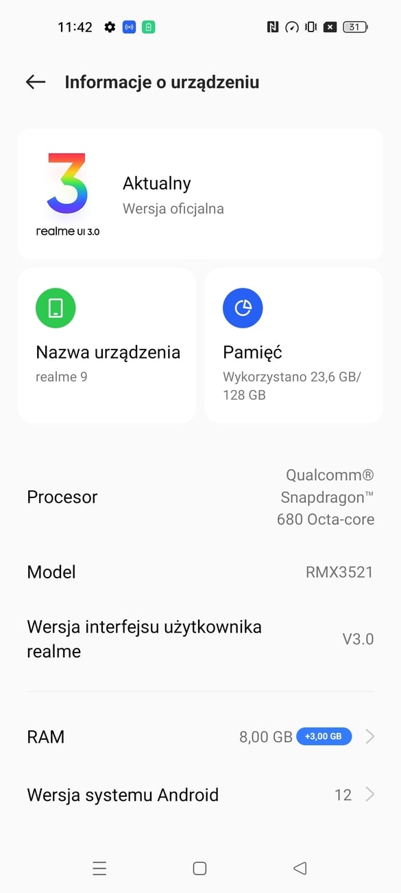 Telefon działa pod kontrolą Androida 12 i nakładką realme UI 3.0. System działał płynnie i stabilnie przez cały okres trwania testów, co oczywiście należy zaliczyć na plus.