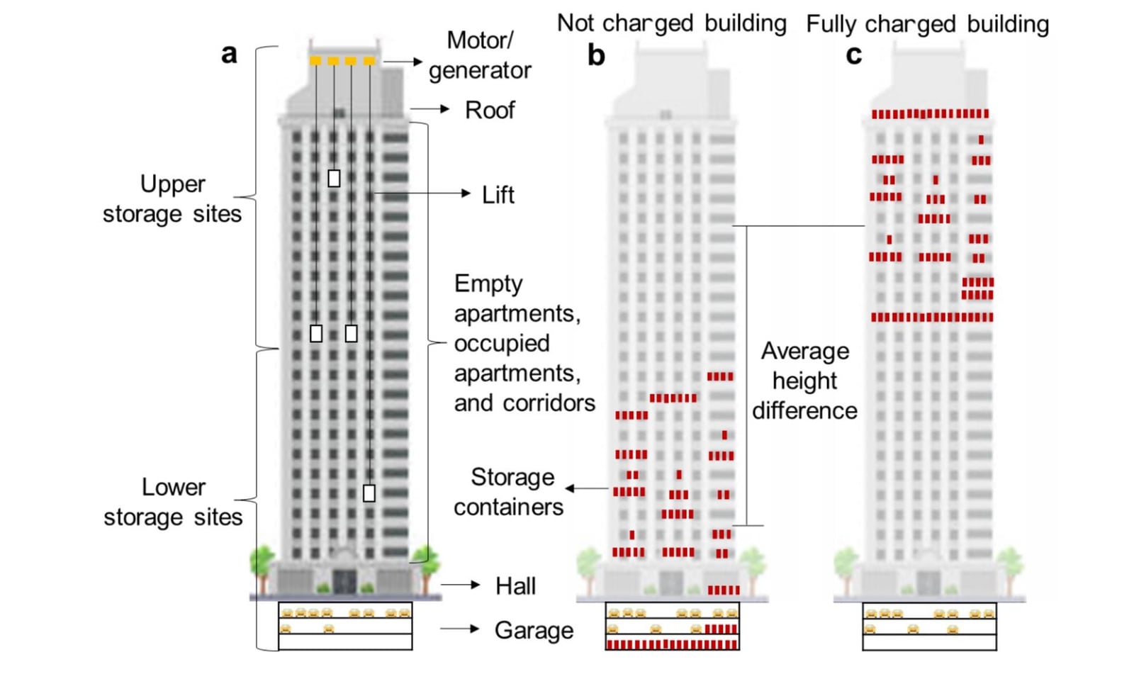 W praktyce system wciągarek wykorzystywałby naddatki energii na wyciąganie bloków np. z poziomu parkingu (albo jeszcze niższego), a te bloki byłyby magazynowane na odpowiednich (możliwie najwyższych piętrach). Algorytmy określałyby, kiedy najlepiej podnieść ciężary i kiedy wykorzystać zgromadzoną energię, a choć ich skuteczność i zaawansowanie byłyby dalekie od tradycyjnych akumulatorów, to ogólna cena wydaje się rekordowo niska.