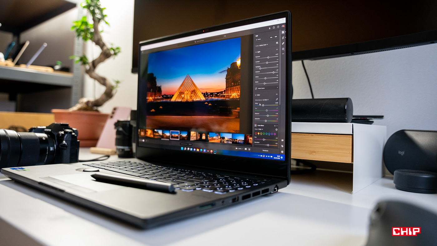 Teoria teorią, ale ten ekran naprawdę robi robotę w trakcie pracy z multimediami. Obrabiając zdjęcia na monitorze LCD, nawet pomimo odpowiedniej kalibracji, zdarza mi się za słabo nasycić kolory. Efekt jest taki, że zdjęcie wyglądające dobrze na komputerze, na ekranie smartfonu z ekranem OLED lub AMOLED sprawia wrażenie nieco mdłego. W przypadku Asusa ProArt StudioBook 16 ani razu nie spotkała mnie taka sytuacja. Obraz jest świetnej jakości, kontrastowy, z perfekcyjnie odwzorowanymi i ładnie nasyconymi kolorami. Dzięki temu zawsze mamy pewność, że bez względu na to, na jakim ekranie zostanie otwarta nasza praca, będzie cały czas wyglądać dobrze. A pozostając w temacie ekranu…