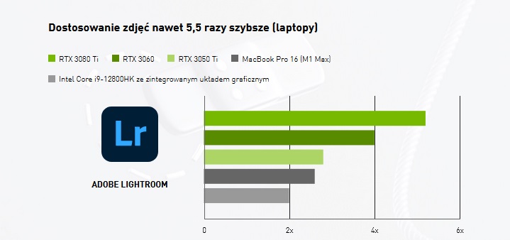 Różnicę często widać nawet w przypadku z pozoru prostych czynności. Funkcja inteligentnego zaznaczania obiektu w Adobe Lightroom na klasycznym i wydajnym ultrabooku potrafi doprowadzić do zawieszenia się aplikacji. W przypadku ProArt StudioBook 16 z Nvidia Studio odbywa się to błyskawicznie i bez problemów z działaniem laptopa.