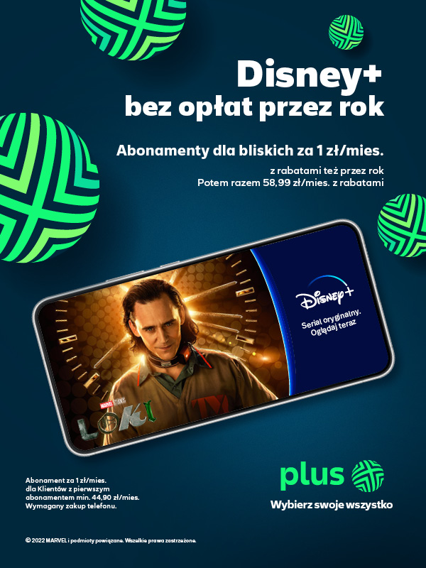 Disney+ w Plusie bez opłat przez rok z każdym abonamentem, zarówno głosowym, jak i internetowym (Internet 5G/LTE oraz Plus Światłowód)