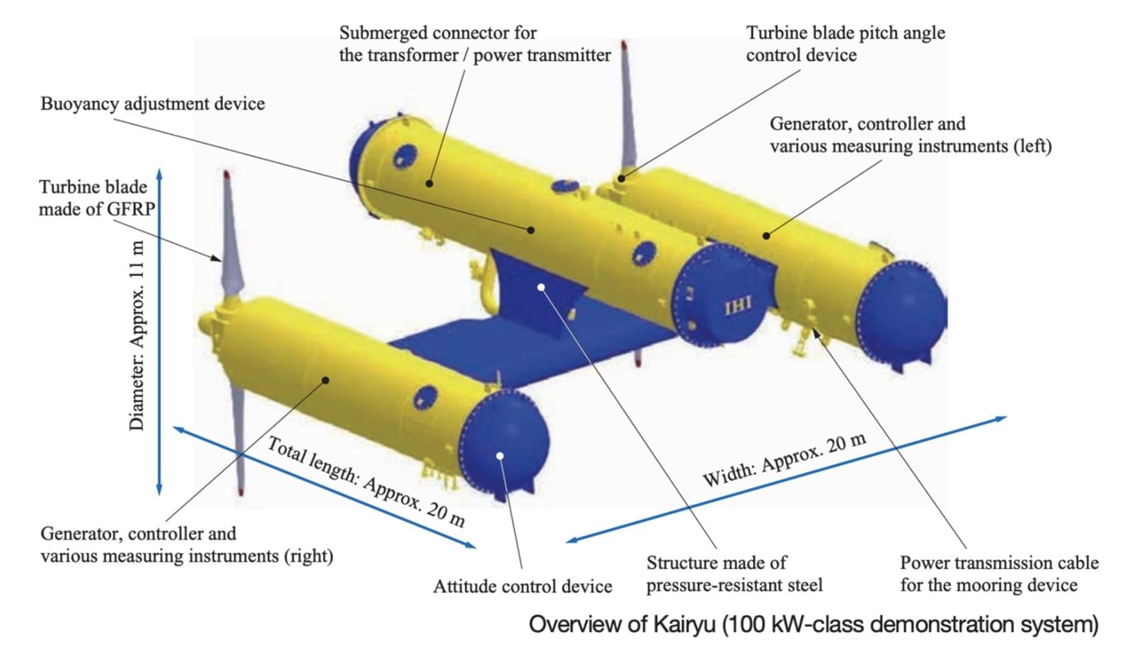 Zamiast ustawiać tego typu generator kilka metrów pod powierzchnią wody, Japończycy wykorzystują obecnie 100-kilowatowy generator pływowy na głębokości około 50 metrów pod falami. Tego typu poziom nie należy do najefektywniejszych, ale został podyktowany względami bezpieczeństwa, bo w tej okolicy występują tajfuny, które mogą powodować fale o wysokości ponad 20 metrów. O odpowiedni poziom tego generatora dba szereg czujników, kontrolujących głębokość, kąt nachylenia i odchylenia, a sam projekt pozwala wynurzyć generator na powierzchnię i przeprowadzić prace konserwacyjne.