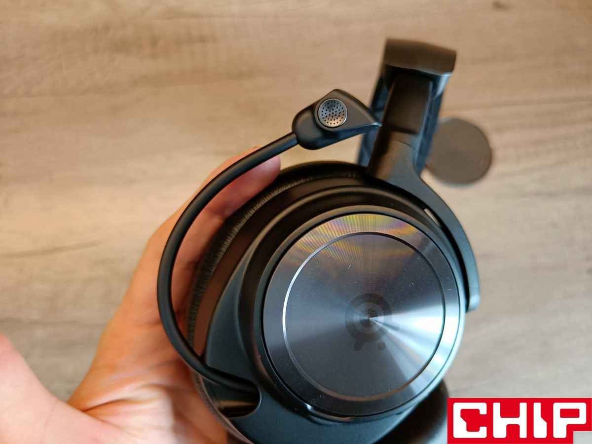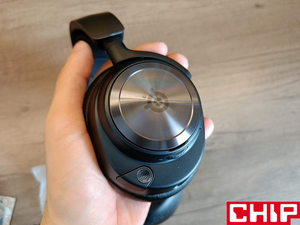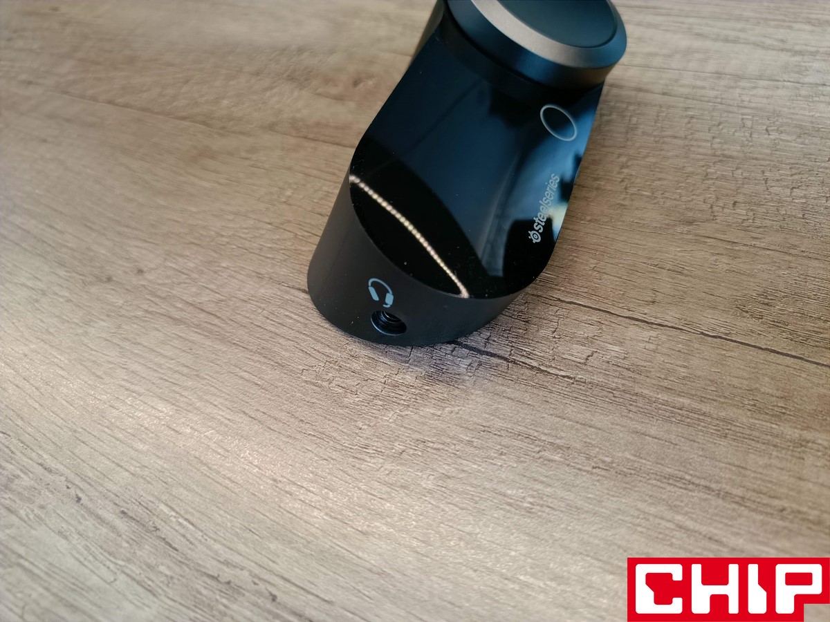 Poza tym na krawędzi znalazł się też wciskany przełącznik on/off dla mikrofonu i pokrętło poziomu głośności, które działa niezależnie od systemu. Szczerze? Żałuję, że Steelseries całkowicie nie zrezygnował z tych dwóch elementów, aby ograniczyć nas do pokrętła na DACu, a kwestię dezaktywacji i aktywacji mikrofonu rozwiązał poprzez samoczynnie wciskany przycisk lub zwyczajny czujnik. Zwłaszcza że producent sam utrzymuje, aby nie korzystać z tego mikrofonu bez jego wcześniejszego wyciągnięcia.