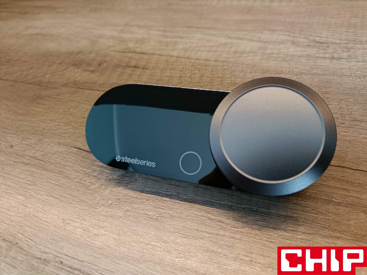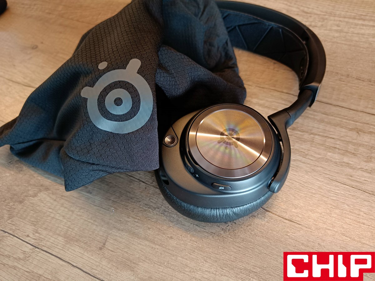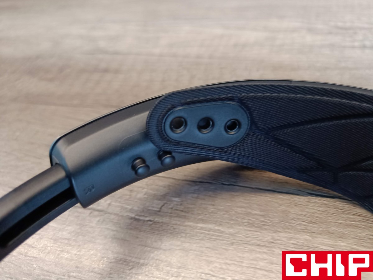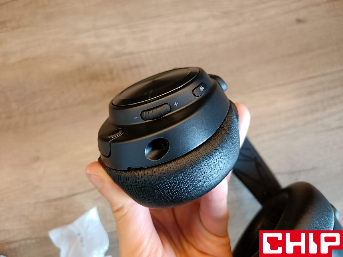 Poza tym na krawędzi znalazł się też wciskany przełącznik on/off dla mikrofonu i pokrętło poziomu głośności, które działa niezależnie od systemu. Szczerze? Żałuję, że Steelseries całkowicie nie zrezygnował z tych dwóch elementów, aby ograniczyć nas do pokrętła na DACu, a kwestię dezaktywacji i aktywacji mikrofonu rozwiązał poprzez samoczynnie wciskany przycisk lub zwyczajny czujnik. Zwłaszcza że producent sam utrzymuje, aby nie korzystać z tego mikrofonu bez jego wcześniejszego wyciągnięcia.