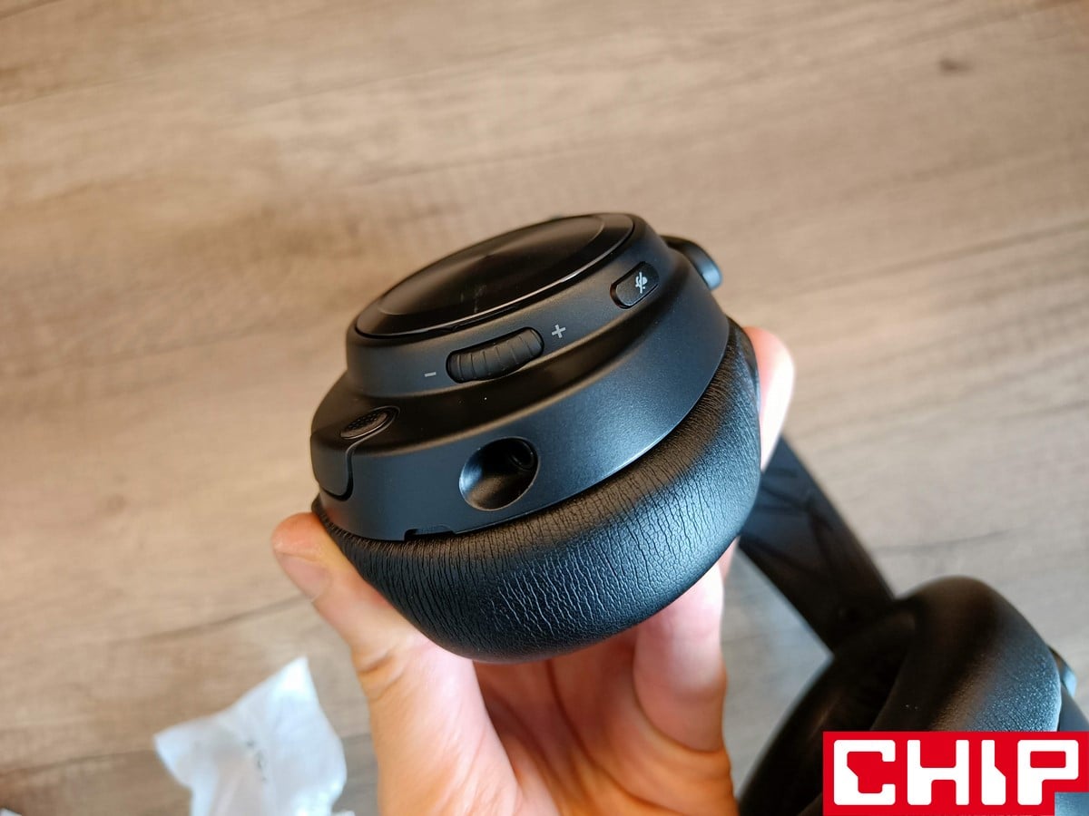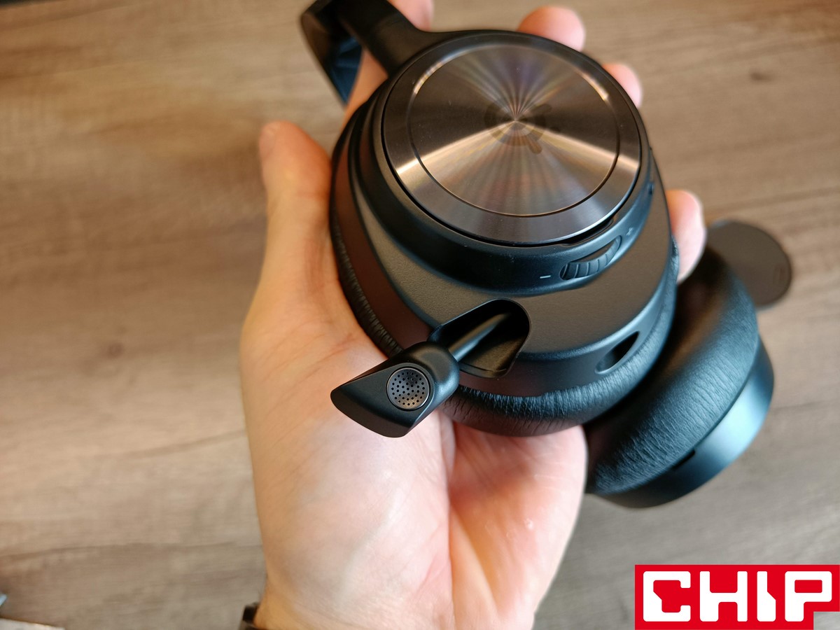 Jednocześnie minimalistyczną, ale w ogólnym rozrachunku ciekawą bryłę, wieńczy skromne centrum dowodzenia na lewej muszli. To obejmuje przede wszystkim wsuwany do wewnątrz dwukierunkowy mikrofon, który idealnie zgrywa się z bryłą obudowy i jest zwieńczony srebrną siateczką z obu stron.