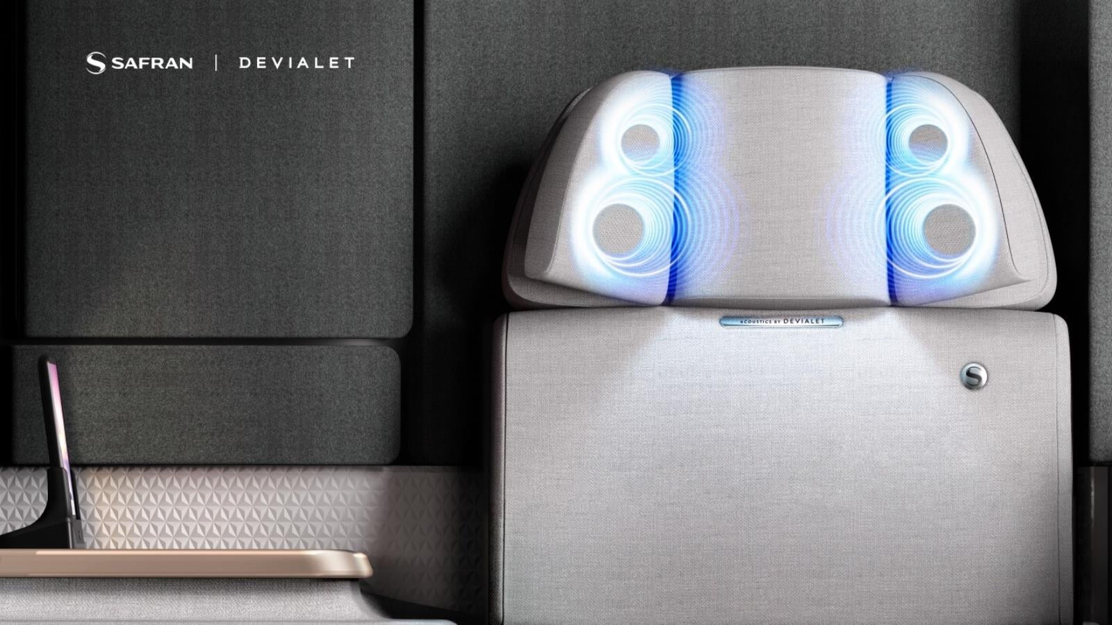 W zagłówkach znalazły się łącznie dwa głośniki zaprojektowane na zamówienie, które w praktyce znajdują się po obu stronach głowy i zapewniają “wysokiej jakości dźwięk”, który nie przedostaje się do uszu pozostałych pasażerów. Zarządzający tymi głośnikami system ma automatycznie dostosowywał się do utworów i hałasu w kabinie w czasie rzeczywistym, odpowiednio sterując membranami i dźwiękiem kierunkowym.