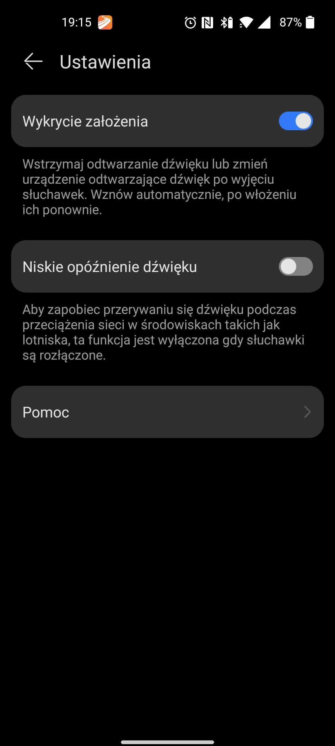 To jednak nie koniec wszystkich ustawień, bo Huawei zapewnia nam również możliwość skromnego dostosowywania gestów w oparciu o “ściskanie” pałąka słuchawek, pozwala łatwo zaktualizować firmware, przetestować odpowiedni dobór gumek i ratuje z opresji zgubionych słuchawek, dzięki funkcji “Znajdź słuchawki”. Możemy też zdecydować, czy chcemy, aby FreeBuds Pro 2 automatycznie wykrywały zdejmowanie/wkładanie słuchawek i czy powinny skupiać się na niższym opóźnieniu audio-wideo, a nie jakości dźwięku.