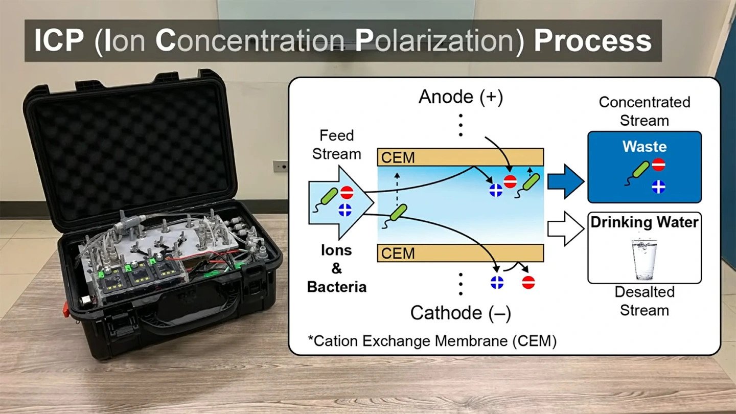 Urządzenie, o którym mowa, wykorzystuje polaryzację stężenia jonów, o czym dyskutowano już od kilku lat. Takie podejście polega na zastosowaniu pola elektrycznego do membran znajdujących się nad i pod wodą. W ten sposób cząsteczki przechodzące przez te membrany są odpychane. Jako że takie rozwiązanie nie jest idealne, to za resztę odpowiada tzw. elektrodializa. Dzięki niej możliwe jest usunięcie pozostałych jonów soli.