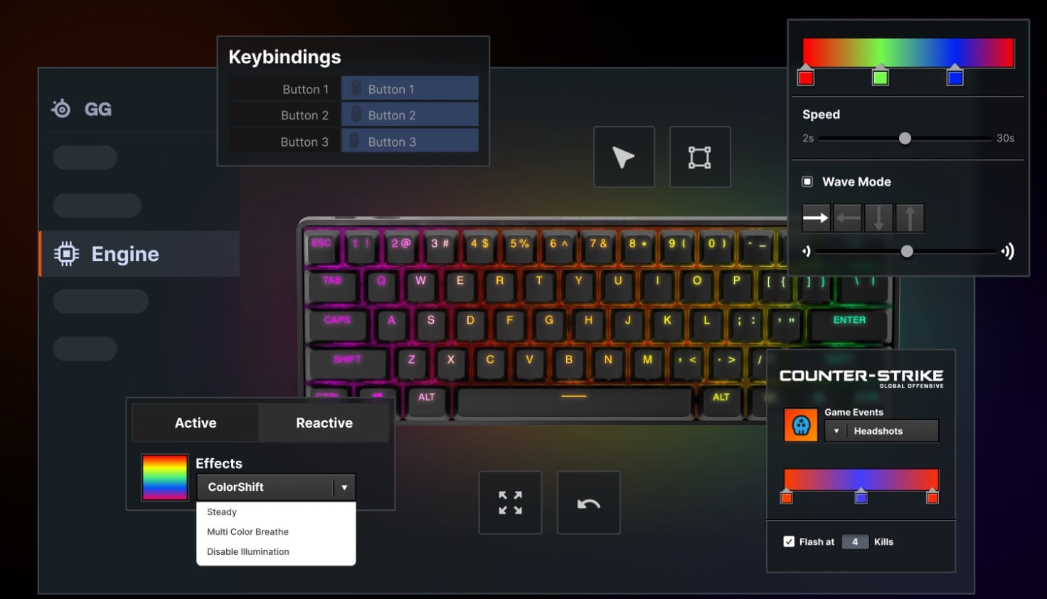 Dostęp do wszystkich ustawień uzyskujemy z poziomu HUBu producenta, jakim jest Steelseries GG. W nim dokonamy wszystkiego tego, co najważniejsze w przypadku klawiatur, czyli nagramy rozbudowane makra, podmienimy funkcje każdego przycisku i nawet zmienimy funkcje multimedialne, czyli drugorzędne (uzyskiwane po naciśnięciu kombinacji z klawiszem funkcyjnym). Dzięki temu wszystkiemu, mimo formatu 60%, Apex Pro Mini Wireless może pełnić rolę pełnoprawnej klawiatury (a nawet czegoś więcej), choć wymaga to zarówno przyzwyczajenia, jak i konfiguracji.