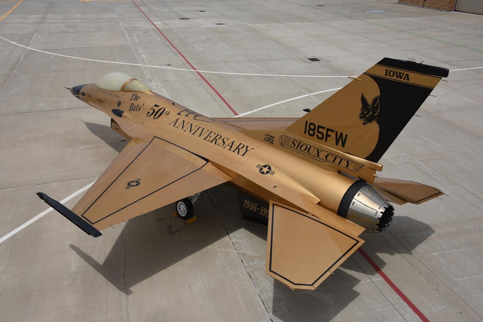Ten dosyć nieznany trend, a raczej jednorazowa akcja malowania samolotu na złoto, rozpoczęła się w 1996 roku, kiedy to Siły Powietrzne USA obchodziły 50. rocznicę powstania. Zainicjował to były już, a za czasów służby “uwielbiany dowódca 185 Skrzydła Myśliwskiego płk Dennis Swanstrom”, który przeforsował swój pomysł przemalowania ekspozycyjnego F-16 na złoto.