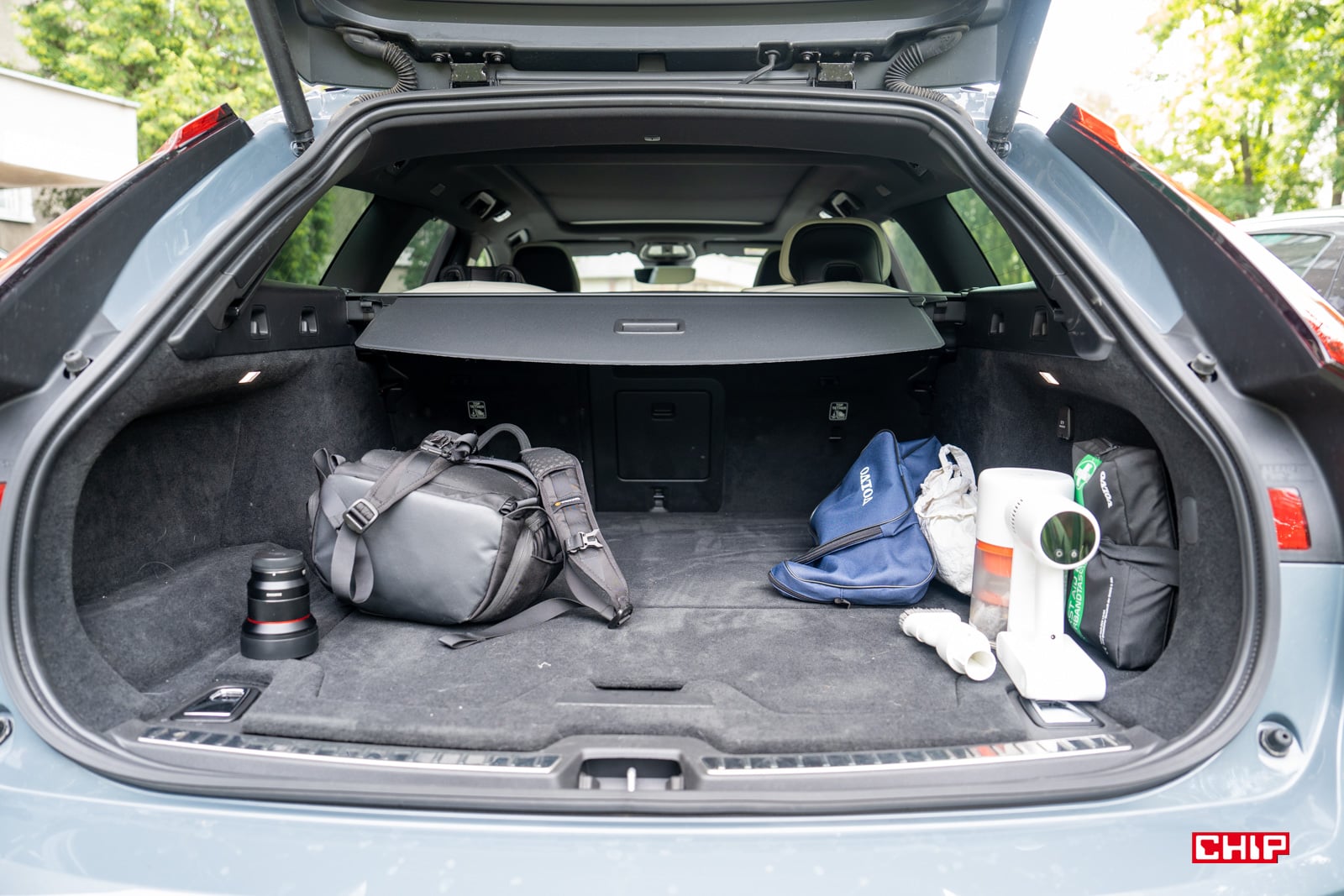 Bardzo dużo miejsca mamy też w bagażniku. To 551 litrów ze złożonymi siedzeniami oraz 1 988 litrów po ich złożeniu. W praktyce Volvo V90 zabrał nas na kilka dni do Gdańska, na Open’er Festival. Dwie osoby plus kot, więc bagażu mieliśmy jak na co najmniej pięć osób. Sporo ubrań, bo upał, bo co innego na koncert, co innego na co dzień. Duży plecak sprzętu fotograficznego. Do tego asortyment kota. Miski, kuweta, karma, kocyk, żeby zapach był znajomy (nie pytajcie), pionowy odkurzacz (bo nie udało się kota ogolić przed wyjazdem, a gubi sierść jak szalony), nawet wentylator, bo upał (co było mądrą decyzją).
