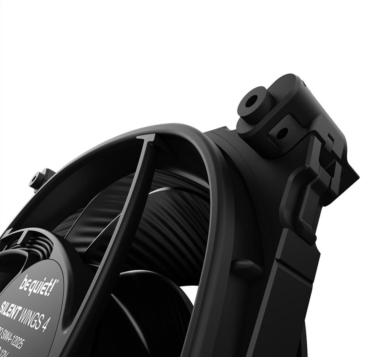 W kwestii wyglądu, be quiet! postawił na niczym niezmąconą czerń zwieńczoną w kilku miejscach nazwą producenta. Jeśli z kolei idzie o wydajność, w serii Silent Wings 4 skupił się na poprawieniu ciśnienia statycznego, co osiągnięto przez zmianę kształtu łopatek, ich mniejszym prześwitem (1,0 vs 1,2 mm), a przede wszystkim zastąpieniem lejkowatego wlotu powietrza lejkowatym wylotem, który rozprasza powietrze na większej powierzchni.