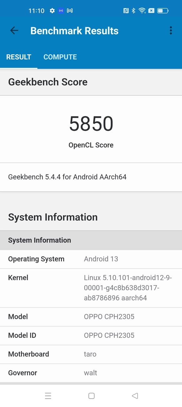 - Geekbench Compute OpenCL – 5874 pkt (ColorOS 12) vs 5886 pkt (ColorOS 13)