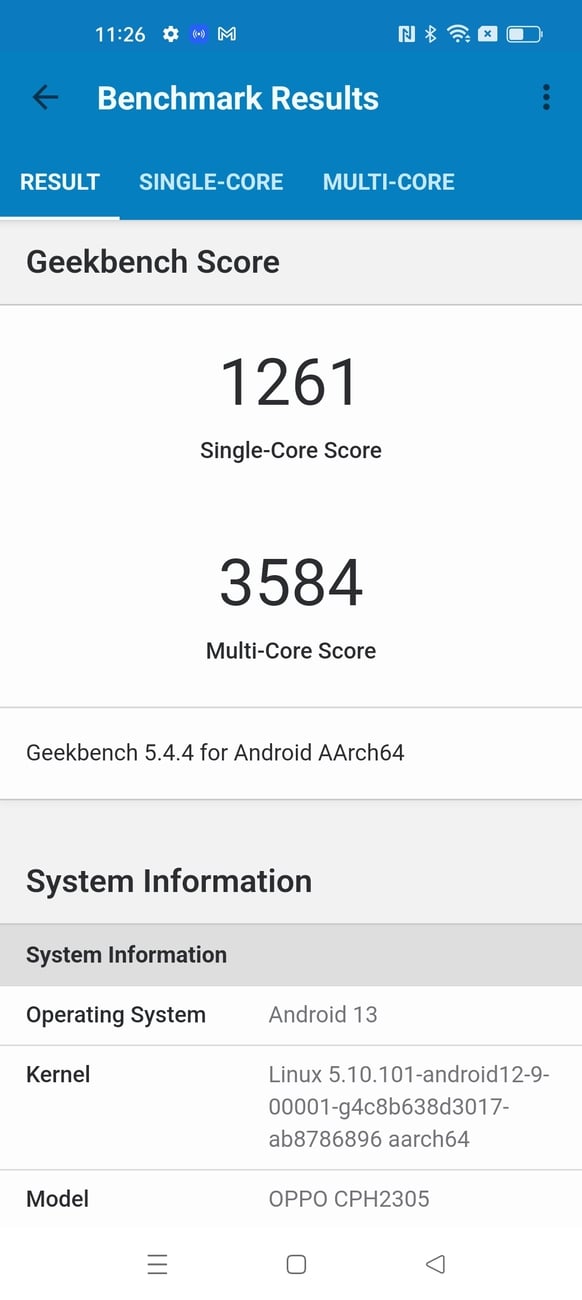 - Geekbench 5 Multi Core – 3244 pkt (ColorOS 12) vs 3584 pkt (ColorOS 13)