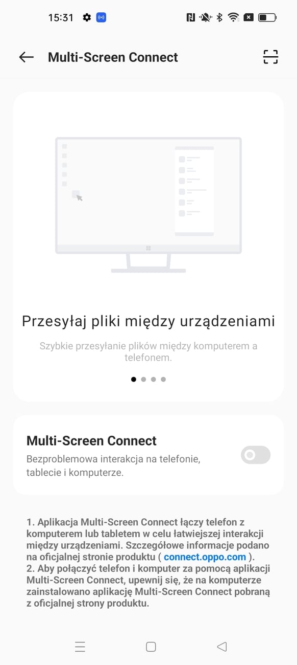 - Wsparcie dla OPPO Pad Air w ramach Multi-Screen Connect. Funkcja obsługuje teraz bezproblemowe połączenie i przesyłanie plików między smartfonem a komputerem oraz między smartfonem a OPPO Pad Air. Nie mam tabletu od Oppo, także nie miałem jak tego sprawdzić 😉