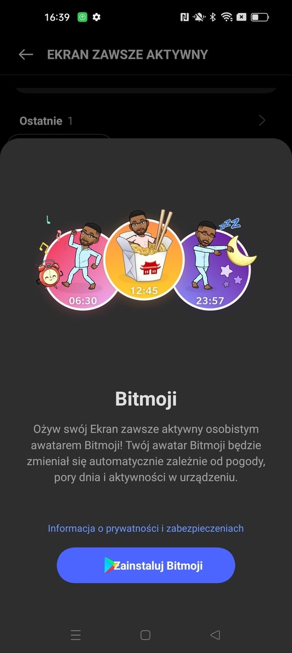 Idąc dalej – spore zmiany nastały w Always On Display. Teraz jest odświeżane z częstotliwością zaledwie 1 Hz, w celu zminimalizowania zużycia energii. Do powiadomień wyświetlanych w ramach Always On Display dodano również wybrane aplikacje firm zewnętrznych – np. Spotify. Wizualnie również i tu nastały zmiany – dodano serię animacji z przyrodą i zwierzętami (np. rybami i pingwinami). Producent deklaruje również ulepszenie Bimoji oraz Insight na Always On Display. Czy były wcześniej z nimi problemy? Nie wiem, ale teraz działały bez problemu.