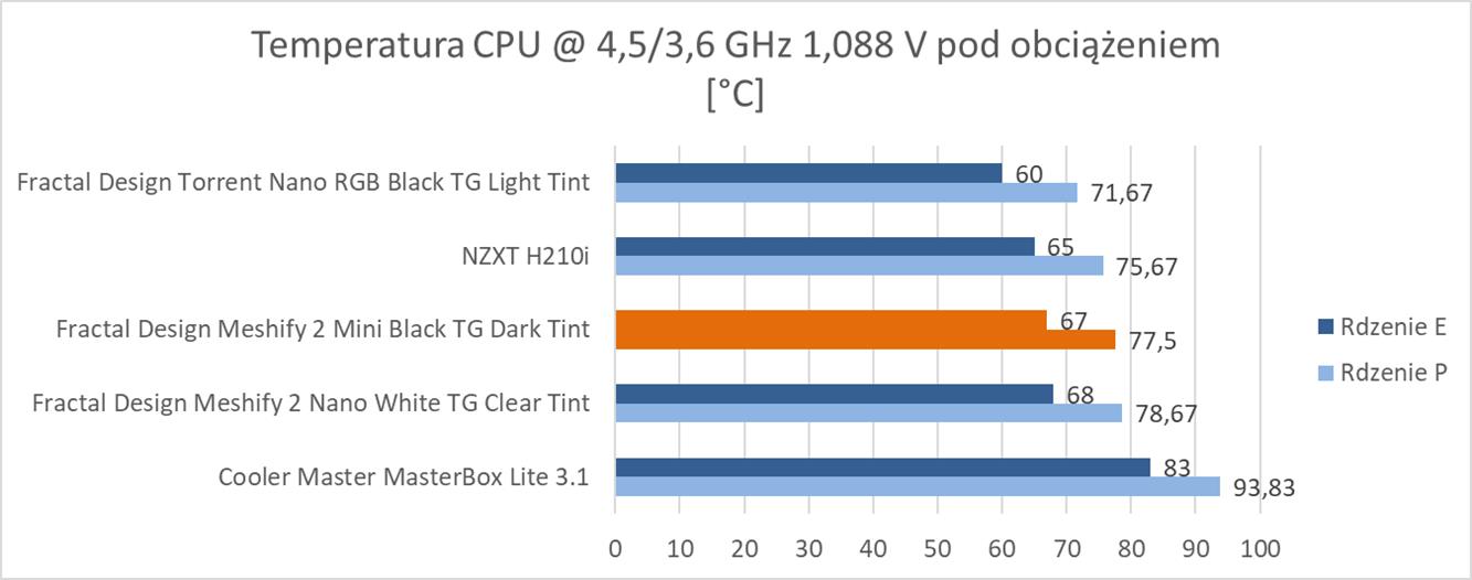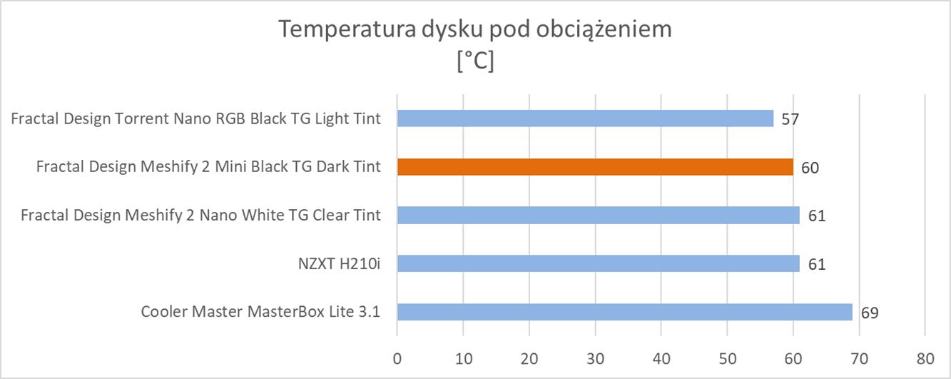 Na wykresach znajdziecie również model Nano, który wypada tylko minimalnie słabiej od Mini. Jeśli więc szukacie jeszcze mniejszej obudowy, to Nano również zapewni Wam dobre temperatury.