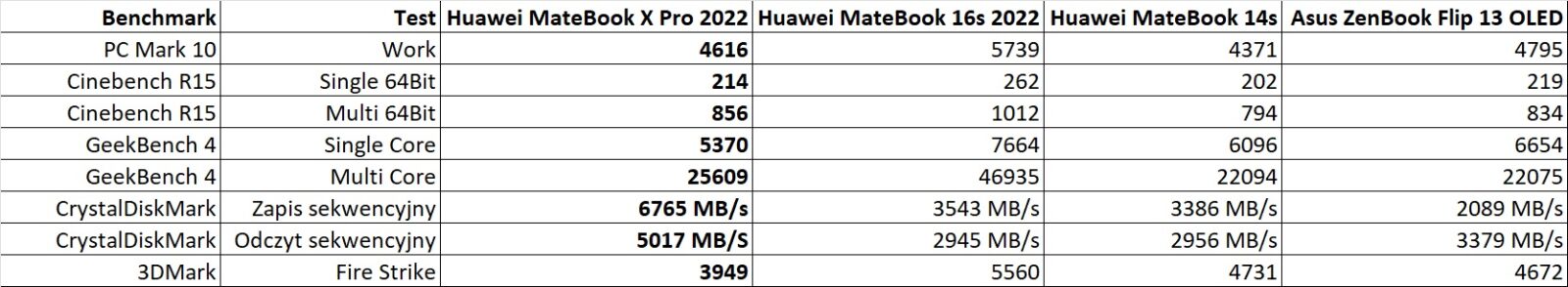 Wydajności MateBookowi X Pro 2022 nie może zabraknąć