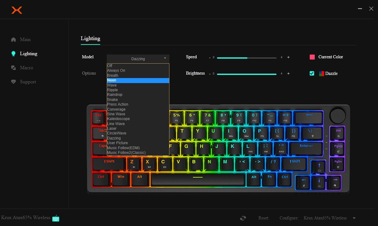Najważniejsze cechy Krux ATAX 65% Pro RGB Wireless