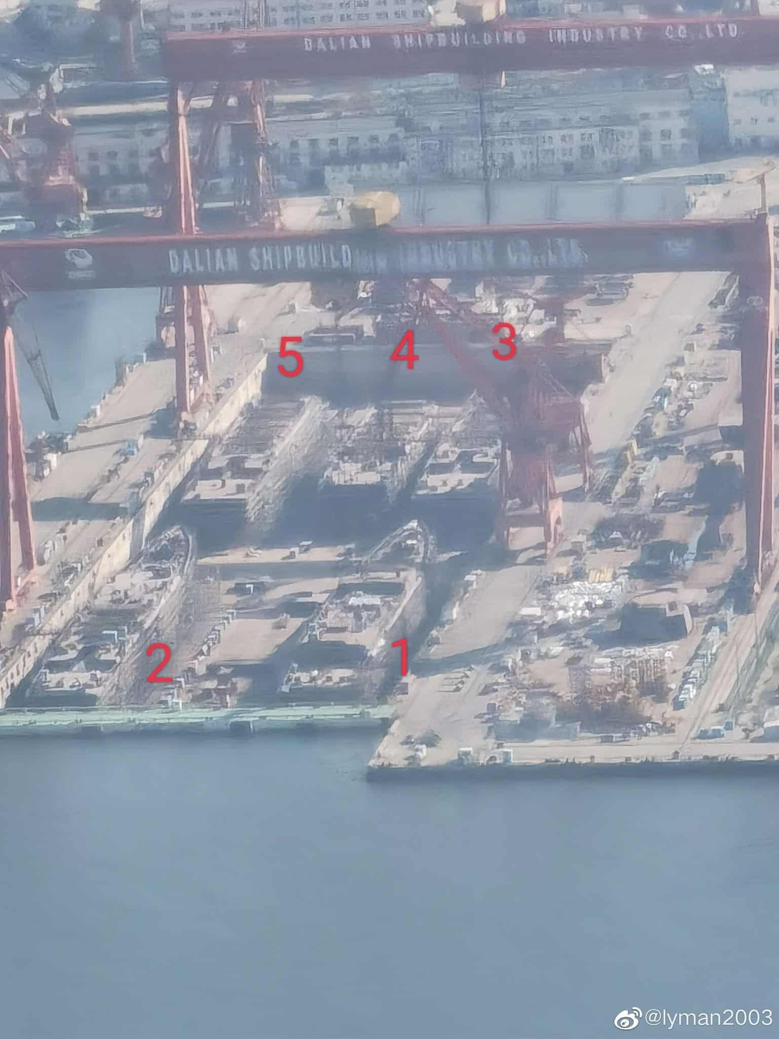 Na Weibo pojawiło się zdjęcie, które pokazuje, jak powstają potężne niszczyciele Chin Typ-52D w stoczni Dalian. Znajduje się tam aż pięć kadłubów w różnych stadiach ukończenia, co w sumie nie dziwi, bo ta stocznia jest jedną z dwóch chińskich stoczni, które odpowiadają za konstruowanie dużych nawodnych okrętów bojowych. Taka produkcja tłumaczy, dlatego tylko w 2019 roku chiński przemysł stoczniowy zwodował rekordową liczbę 10 niszczycieli, a przed rokiem 8 kolejnych.