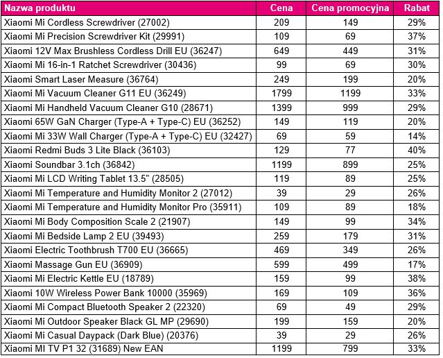 Do skorzystania z oferty promocyjnej na tańsze produkty Xiaomi uprawnieni są posiadacze abonamentu w T-Mobile (T, T DATA, Rodzina), a także użytkownicy oferty na kartę (GO!, Frii) oraz mix (Frii Mix). Najtańszy produkt po rabacie (Xiaomi Mi Casual Daypack) kosztuje zaledwie 29 zł, a najdroższy (Xiaomi Mi Vacuum Cleaner G11) 1199 zł.