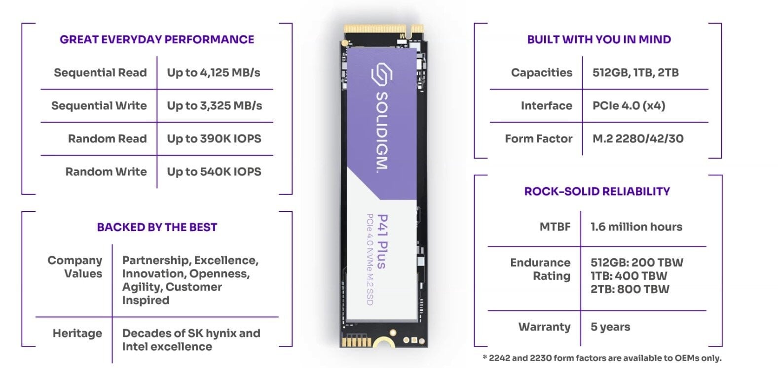 Jako że P41 Plus to pierwszy produkt marki Solidigm, “podkreśla on zaangażowanie firmy w dostarczanie wiodącego w branży portfolio rozwiązań pamięci masowej, które obejmuje wysokowydajne dyski SSD dla rynków klientów, chmur i centrów danych”. Innymi słowy, zaprezentowany właśnie SSD jest dla tej firmy jedyną okazją na zrobienie dobrego pierwszego wrażenia.
