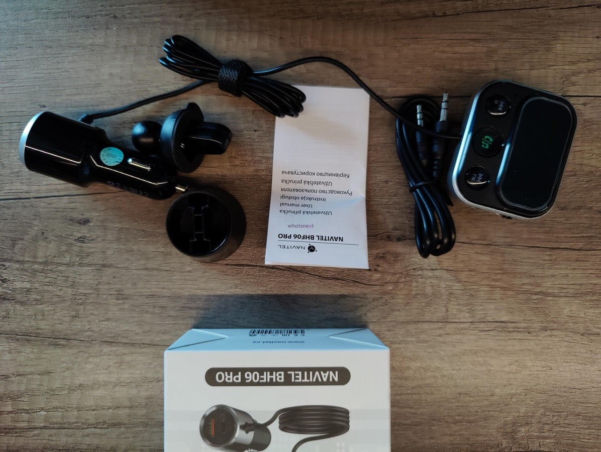 Bez względu na wybór, zapewnicie sobie zestaw głośnomówiący z transmiterem FM, łącznością Bluetooth 5.1 (obsługa A2DP, AVRCP, HFP i HSP) w zasięgu od 5 do 10 metrów oraz opcją odtwarzania nagrań z nośników fizycznych (obok podłączonego smartfona), bo z pendrive lub karty pamięci microSD. W tej kwestii model najdroższy (BHF06 Pro) rozszerza tę opcję o wyjście AUX, do którego Navitel dorzucił przewód mini-jack 3,5 mm.