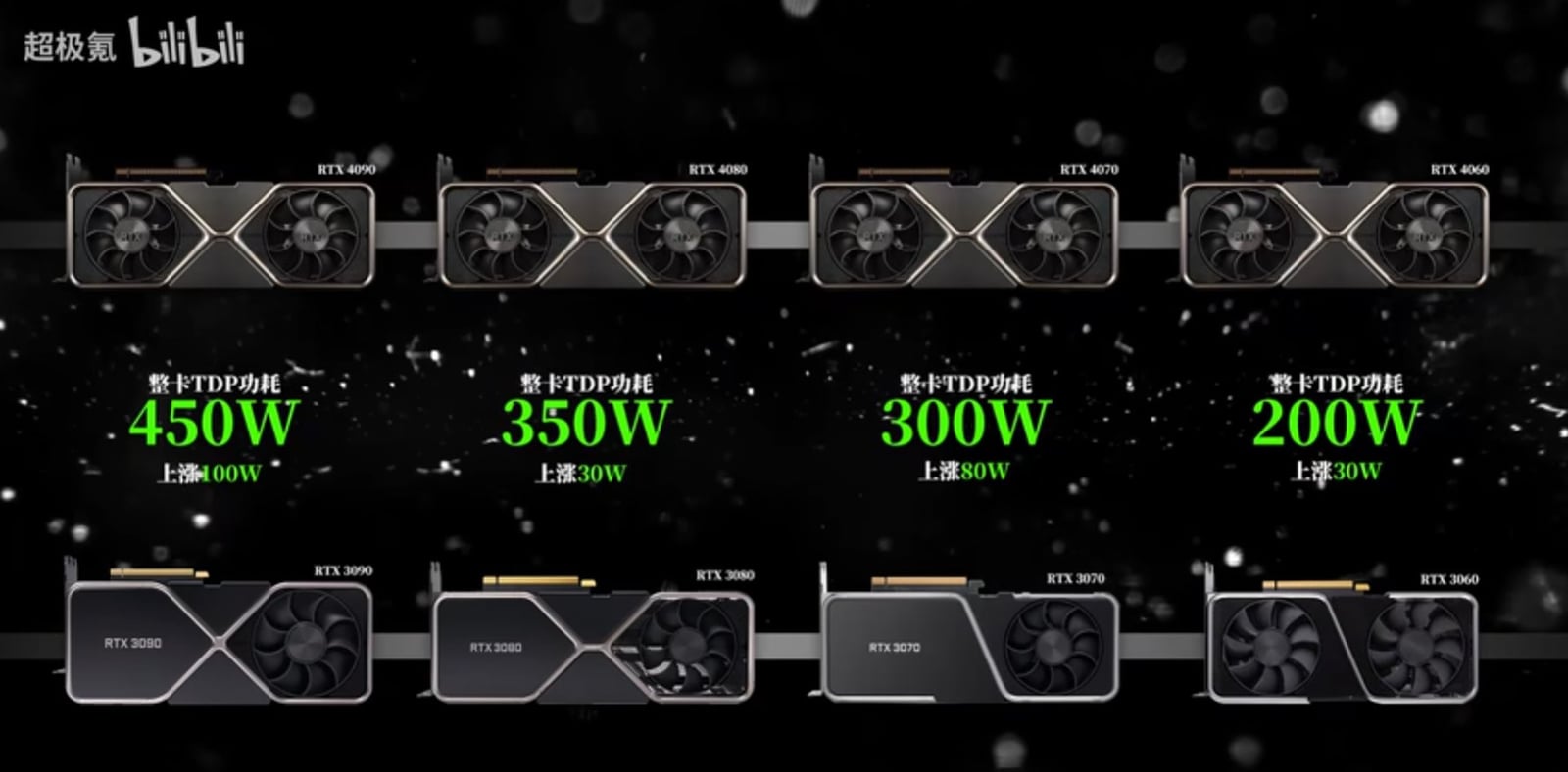 - GeForce RTX 4080 (AD102): TDP: 350-450 watów