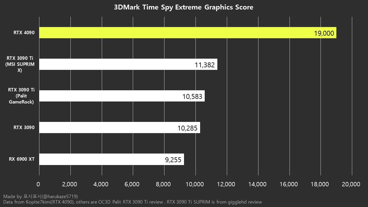 Czy kogoś zdziwi to, że wydajność GeForce RTX 4090 jest tak wysoka, że ta karta bez najmniejszego problemu radzi sobie z przebijaniem możliwości RTX 3090 Ti o aż 70%? Tak bowiem ma prezentować się nieoficjalny poziom możliwości tej flagowej karty w teście 3DMark Time Spy Extreme (via @harukaze5719 i @kopite7kimi), czyli tym łączącym rozdzielczość 4K z wykorzystywaniem API DirectX 12.