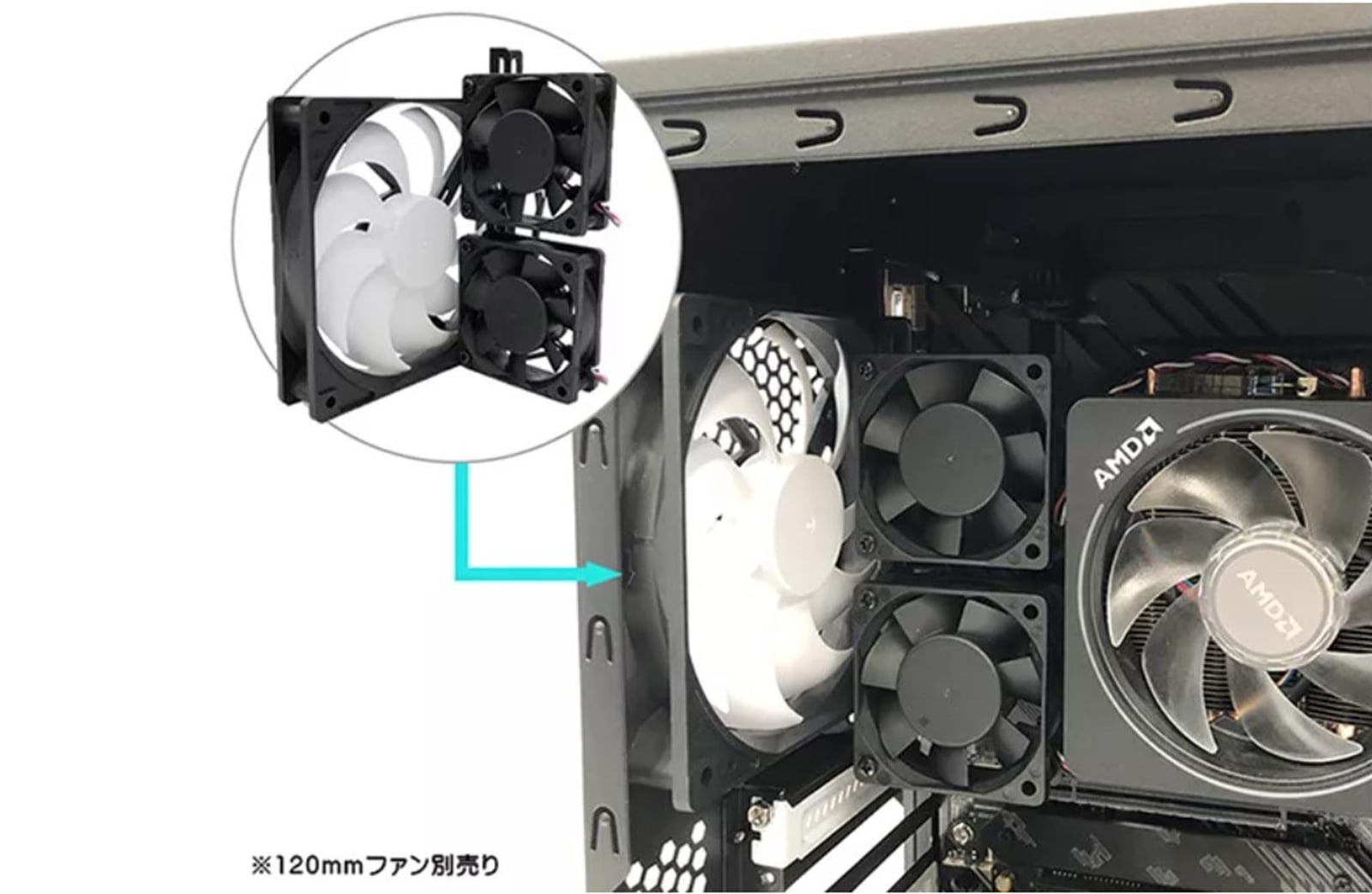 System N-VRM-FSTY60 do kupienia za 20$ sprowadza się do dwóch 60-mm wentylatorów o grubości 20 mm na bazie łożysk typu hollow, które rozkręcają się do maksymalnie 3000 obrotów na minutę i wedle producenta generują tylko 21 dBA hałasu, ale jest to raczej wartość dla najniższego poziomu RPM. Ich montaż sprowadza się do przykręcenia ich do ramki montażowej tylnego wentylatora tak, aby “dmuchały” wprost na jedną część sekcji zasilania (tę po lewe od procesora).