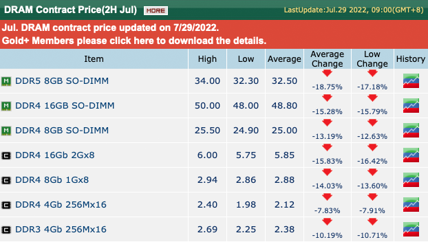 Wedle raportu DRAMeXchange popyt na komputery klienckie, spadek cen pamięci, a także rosnąca podaż układów pamięci DDR5 sprawią wkrótce, że różnica cenowa między DDR4 i DDR5 nieco się zatrze. W ogólnym rozrachunku całościowe ceny pamięci DRAM (Dynamic Random Access Memory) wykazują od dłuższego czasu tendencję spadkową, czego apogeum miało miejsce w środku lata, kiedy to ceny kontraktowe 8-GB modułów DDR5 spadły o średnio ~18,75%, a DDR4 o 13,19%.
