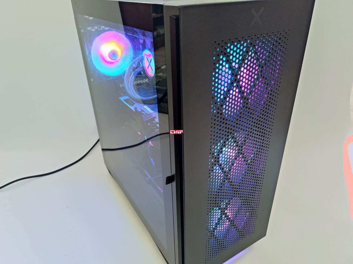 Podzespoły zostały odpowiednio dobrane i poskładane. Można mieć wątpliwości co do umieszczenia dysku, ale testy wykazały, że nie przegrzewa się, więc jest ok. Plusem na pewno jest 2 TB dysk oraz 32 GB pamięci RAM. Producent przyłożył się do ułożenia okablowania i wszystko jest ładnie przerzucone na tył i pospinane. PC może też zdecydowanie się podobać — mamy naprawdę sporo różnego podświetlenia, a wszelkie oprogramowanie do sterowania jest preinstalowane. Plusem jest też odpowiednie ustawienie BIOS — nie trzeba tym się zajmować. Kolejna zaleta to preinstalowany system Windows 11 – tutaj tylko uzupełniacie podstawowe informacje i można działać.