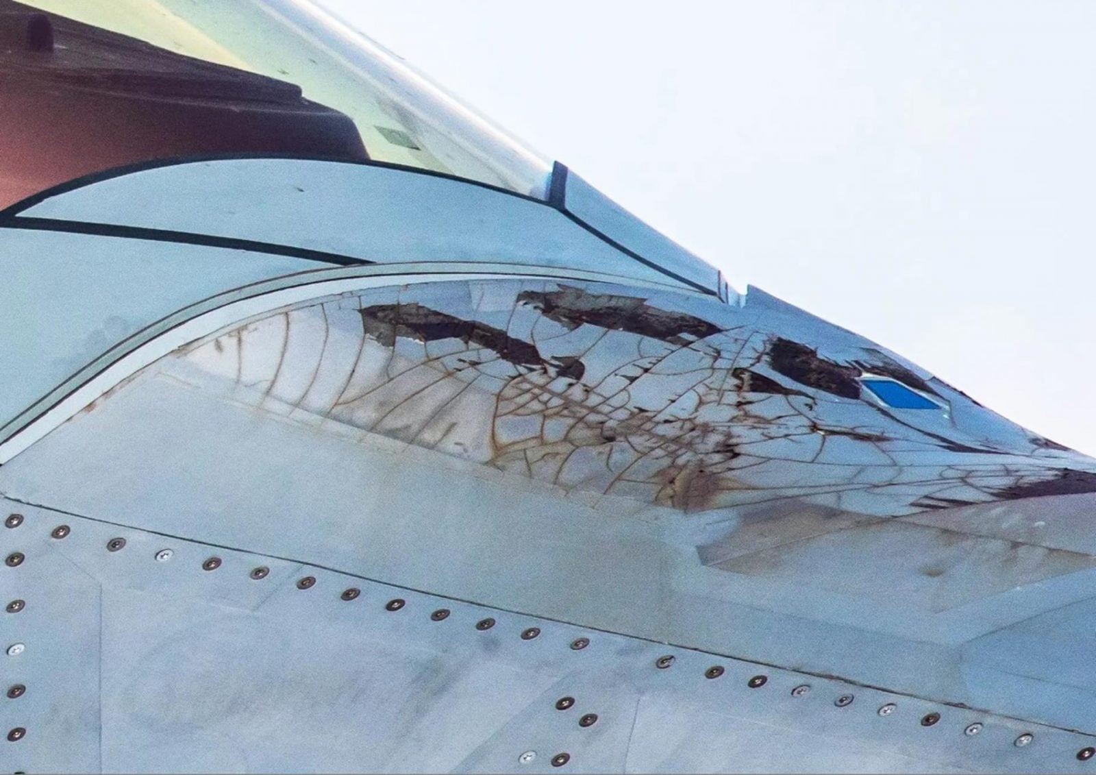 Z daleka myśliwiec wygląda, jakby rdza przeżerała go na wylot, ale tak z całą pewnością nie jest. Uszkodzenie dotyczy wyłącznie samego panelu, ale trudno o jego dokładną analizę. W praktyce bowiem poszycie F-22 Raptor to ściśle strzeżona tajemnica, dzięki której piloci pozostają niewidzialni dla radarów podczas lotu. Jej degradacja przechodzi jednak błyskawicznie w stosunku do tego, jak wiele pracy wymaga, bo podczas lotu panele muszą znosić tarcie spowodowane szybkim lotem i wręcz miażdżące siły G.
