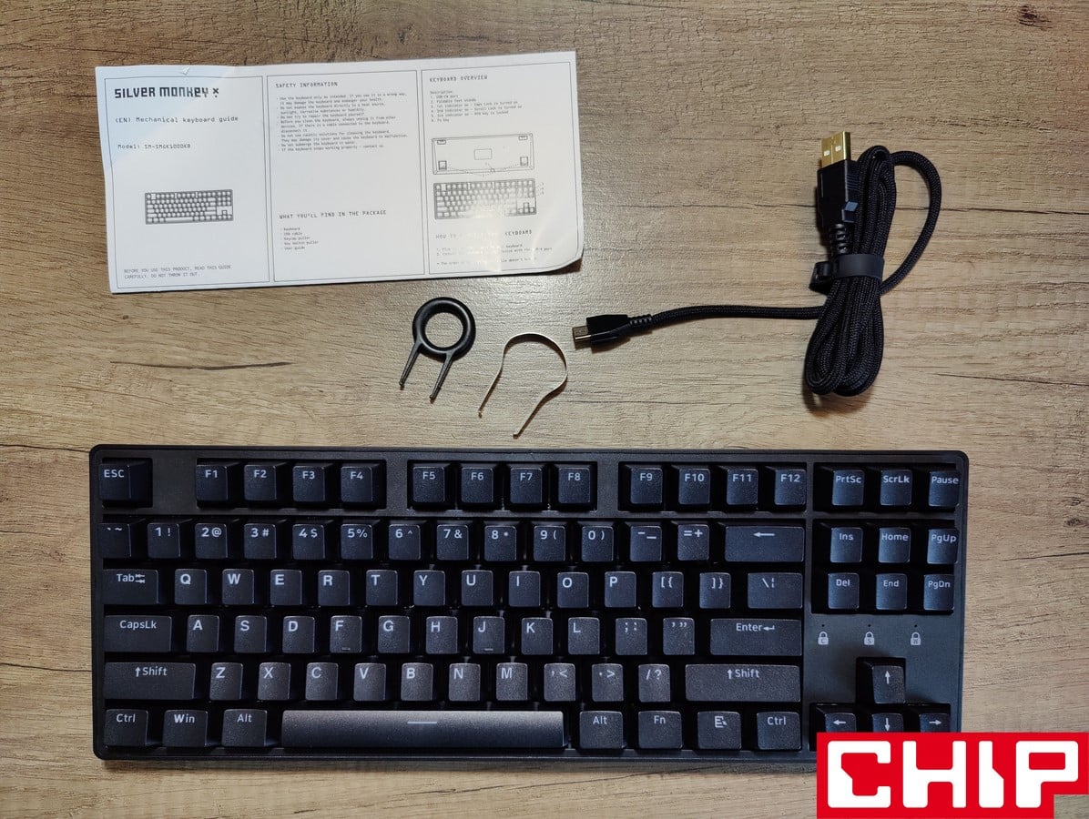 Z nieokreślonego powodu połączenie nazwy, stylu pudełka i logo, na które zdecydowała się firma Silver Monkey w przypadku tej klawiatury, sprawia, że odczułem wrażenie obcowania (w pierwszych chwilach) z modelem wyższej klasy. Zwłaszcza że samo wyposażenie jest ponadprzeciętne z racji obejmowania instrukcji (również w języku polskim), ściągacza klawiszy, przełączników i odpinanego przewodu w lekkim, materiałowym oplocie.
