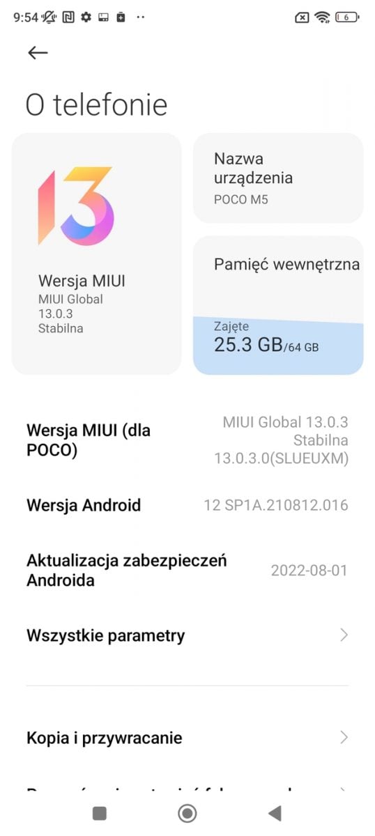 POCO M5 działa pod kontrolą Android 12 z nakładką MIUI 13 od Xiaomi. Tak, od Xiaomi, bowiem POCO jest ściśle powiązane z chińskim gigantem. Na początku testów wydawało mi się, że będę mocno narzekał na optymalizację systemy, bowiem często zdarzały się przycinki i klatkowanie animacji. Na szczęście po aktualizacji problemy ustały w 95 % przypadków, także zalecam w pierwszej kolejności aktualizację systemu po wyjęciu smartfonu z pudełka.