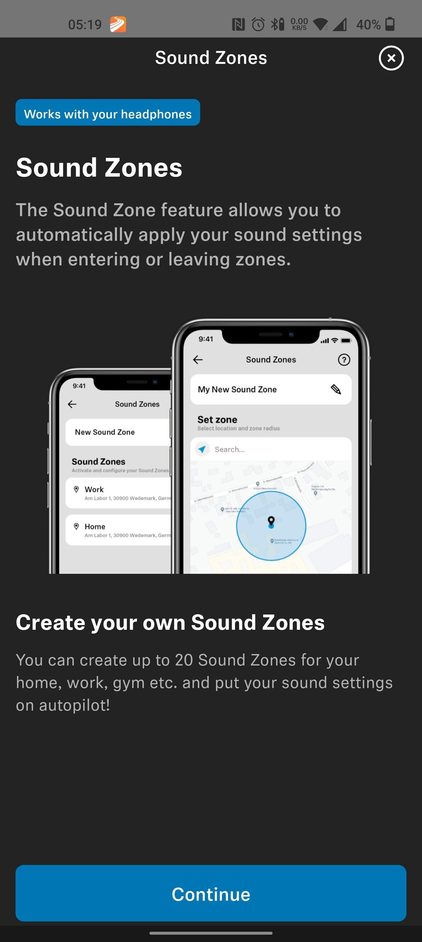 Idąc dalej w ciekawe rozwiązania (choć zdecydowanie nie innowacyjne), Sennheiser postarał się również o wzorowo działające adaptacyjne ANC, które może dostosowywać się do naszego otoczenia, co działa zadziwiająco dobrze, ale oczywiście możecie postawić po prostu na maksymalne wyciszenie. Dodatkowo w aplikacji towarzyszącej na smartfony możecie ustawić dokładne lokacje i to, jak ANC/HearThrough będzie się w nich automatycznie ustawiać. To jednak tylko wisienka na torcie, co możecie podejrzeć, oglądając poniższe zrzuty ekranu z rozbudowanej aplikacji, która oferuje wszystko, czego powinniście od niej oczekiwać.