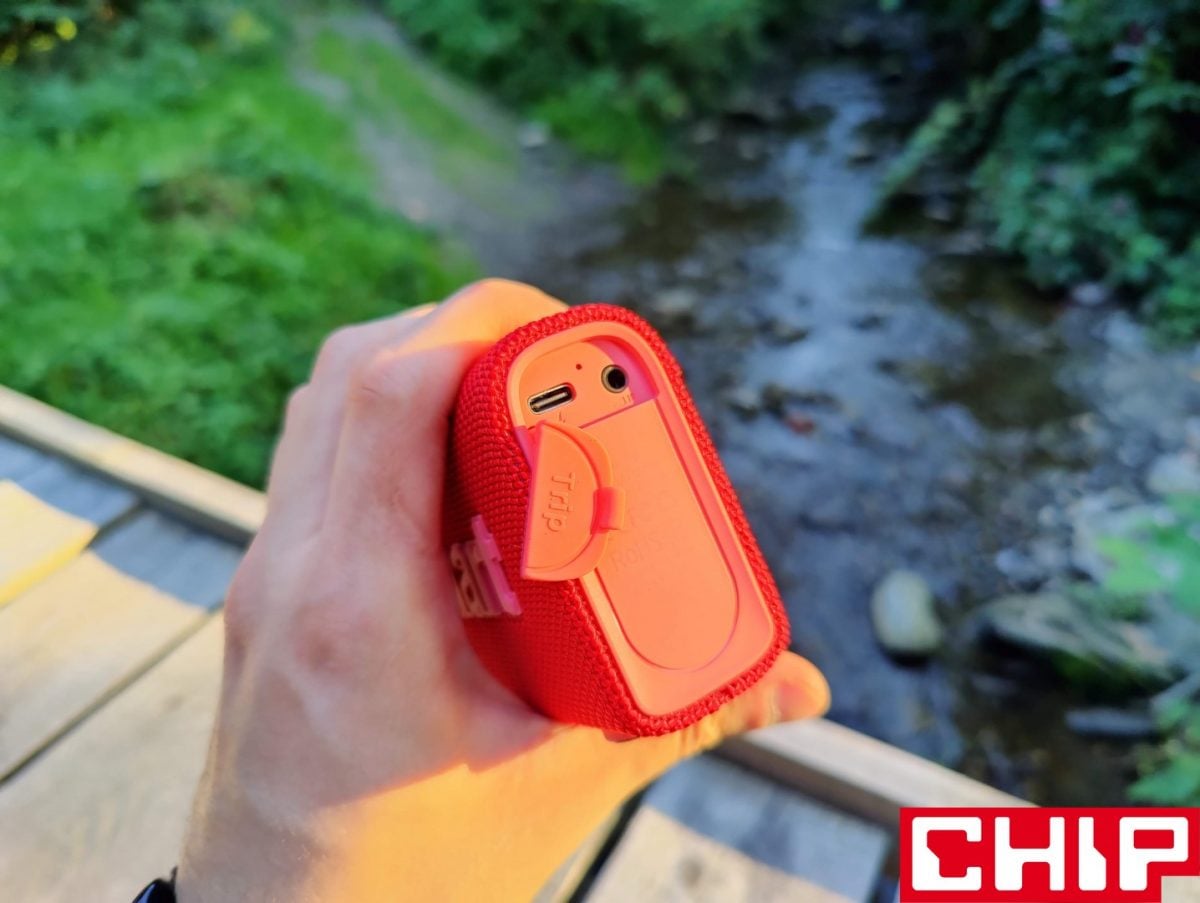 Mimo pozornej prostoty Tronsmart Trip jest jednocześnie wyjątkowy na kilku frontach. Doczekał się bowiem łączności Bluetooth 5.3 (i jedynie kodeka SBC), opracowanej przez producenta technologii SoundPulse, jego obudowa jest odporna na zanurzenia w wodzie do metra głębokości (IPX7). Wśród elektroniki znalazł się również mikrofon, dzięki któremu głośnik zachował kompatybilność z asystentami głosowymi (od Google, Cortana, Siri) i pozwala przeprowadzić rozmowy telefoniczne, choć ogólna jakość i komfort takiej rozmowy daje wiele do życzenia. Chyba że lubicie krzyczeć do głośnika i pozwalać całemu otoczeniu słyszeć Waszego rozmówcę.